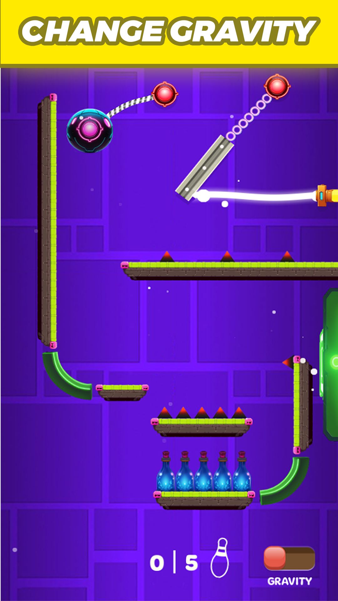 Player has to control the ball with on gravity and off gravity to hit all the objects.Â