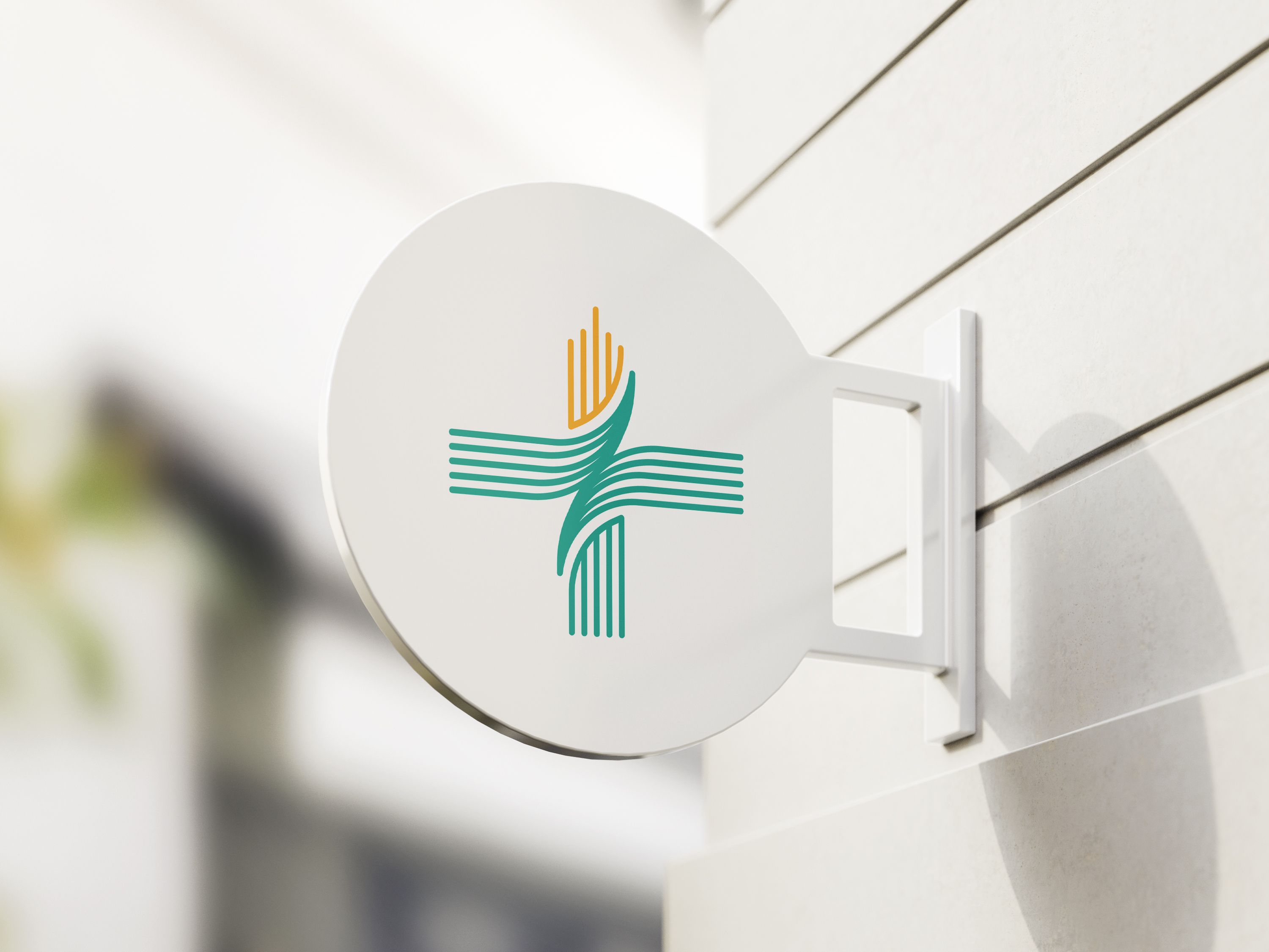 The combination of building icons, heartbeat and health icons, with a simple and minimalist concept, is easy for people to remembe