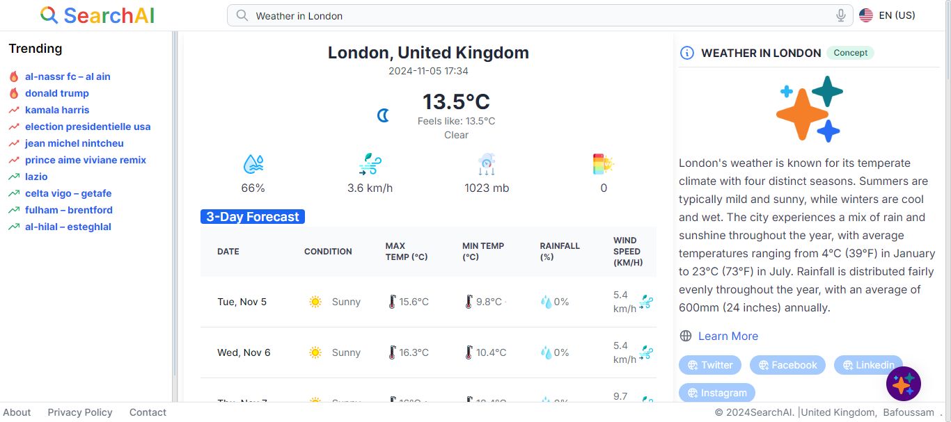 SearchAI is an AI-powered Google Custom search engine built using PHP and styled with Tailwind CSSÂ that uses AI to enhance search results. It uses Google's Gemini API to provide a summary of each search query in the form of a knowledge panel.
