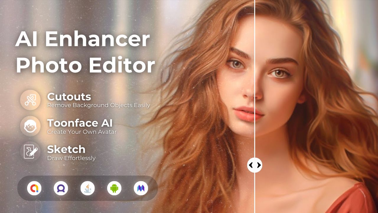 AI Enhancer Photo Editor app improves your photos effortlessly. It fixes blur, pixelation, and damage using advanced AI.