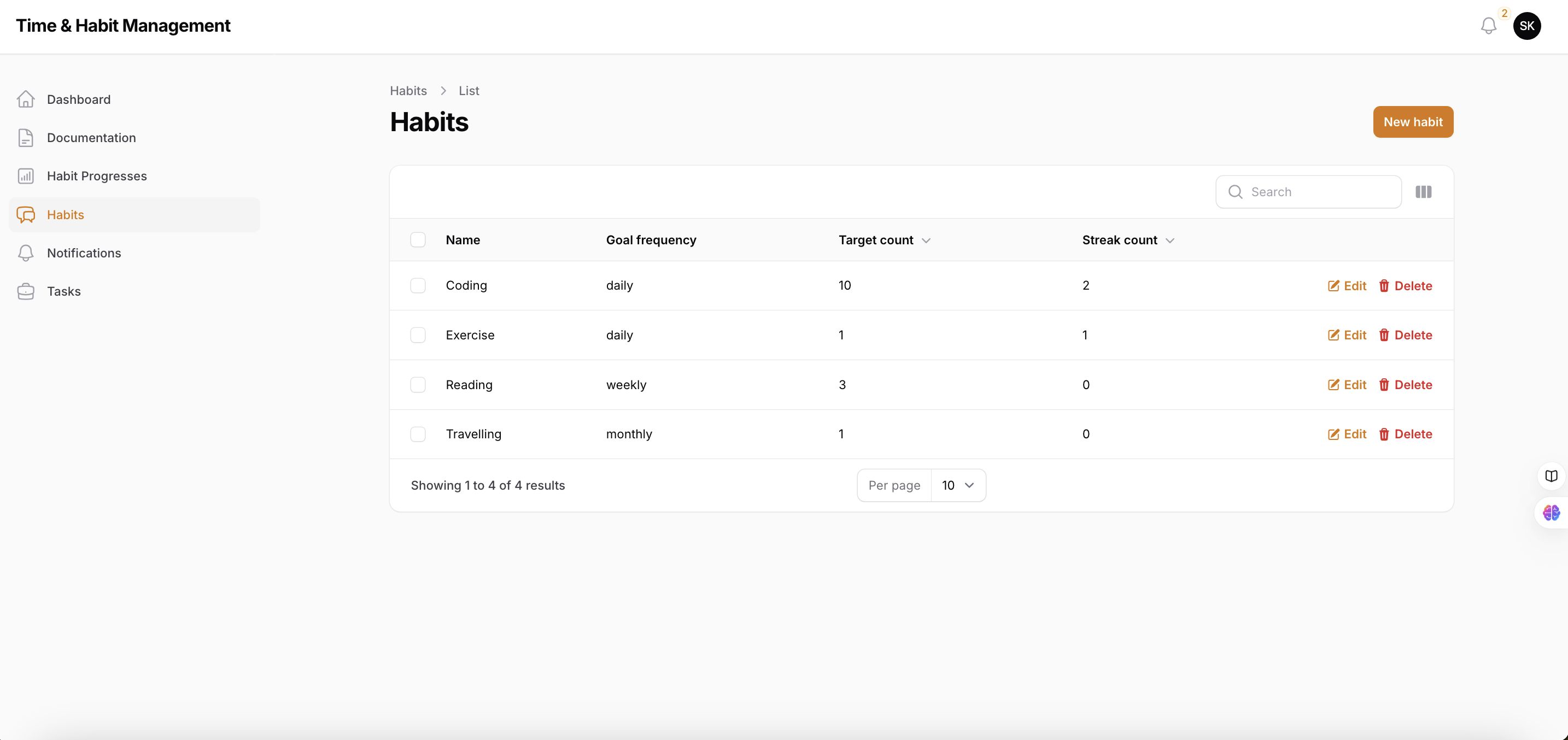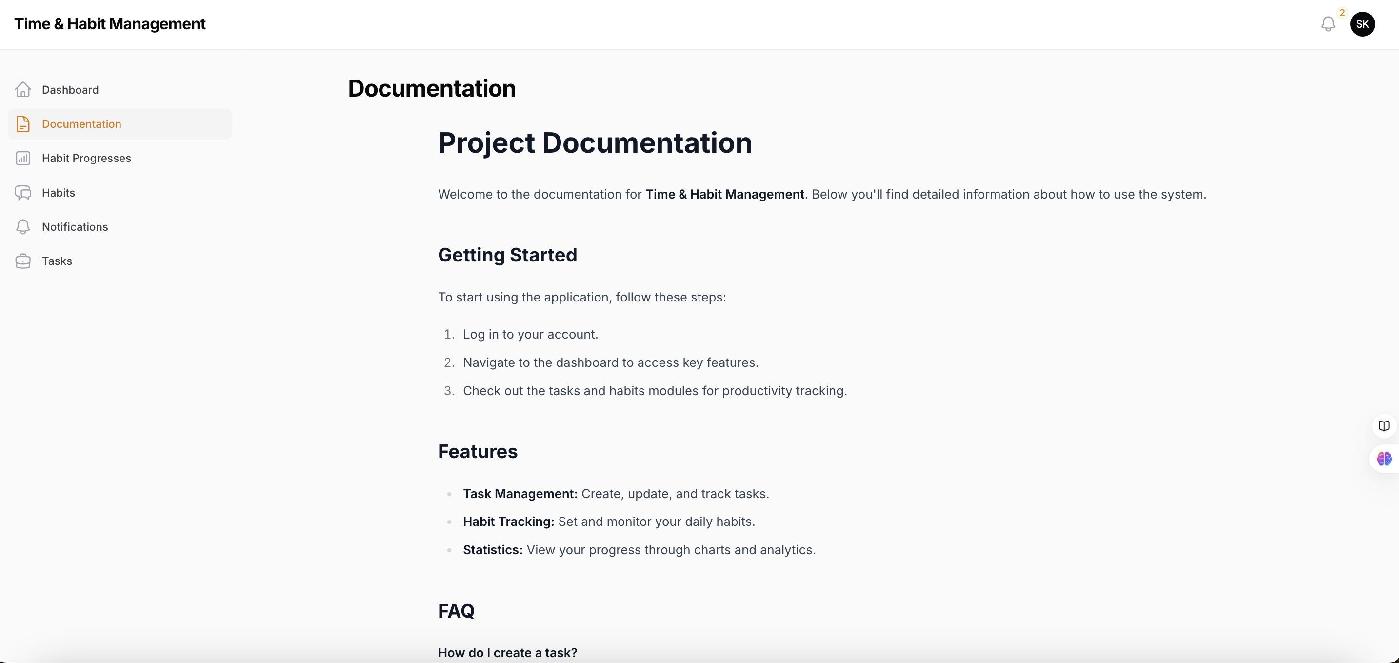 Welcome to the documentation for Time And Habit Management. Below you'll find detailed information about how to use the system.