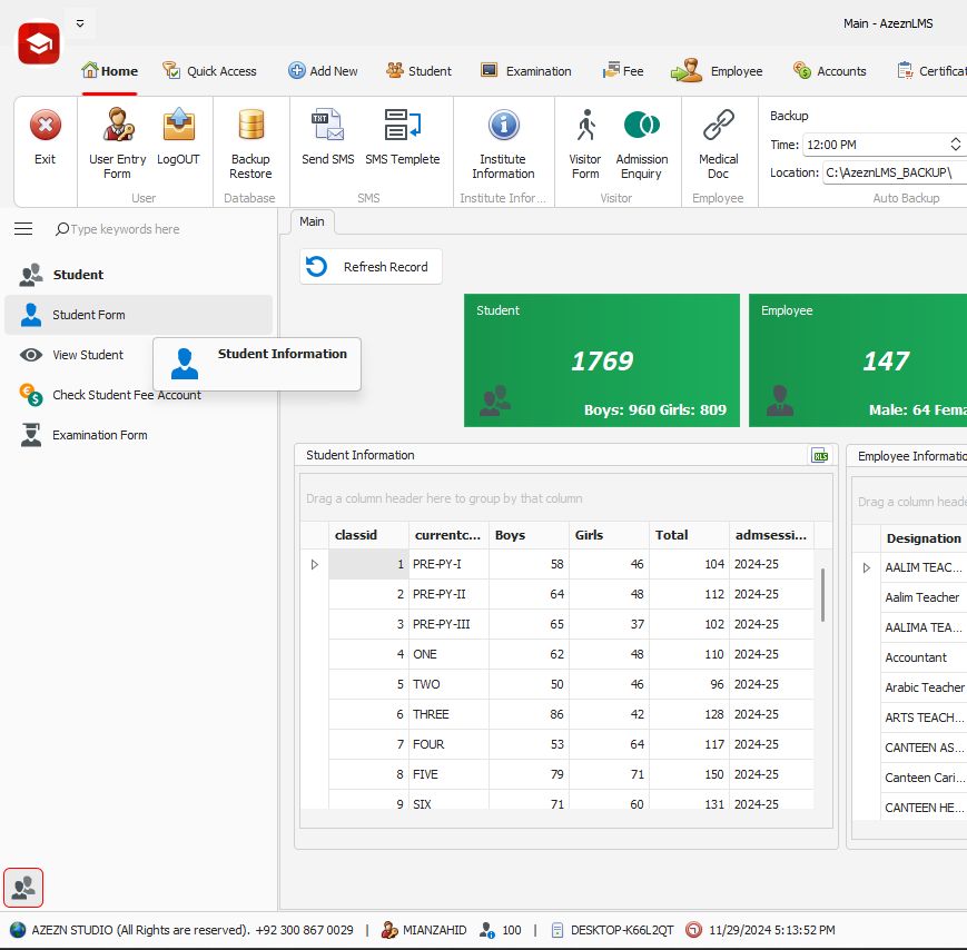 AzeznLMS is a powerful Learning Management System (LMS) built with WinForms in C#. Designed for educational institutions, it streamlines administrative processes by integrating key functionalities such as student management, fee tracking, employee payroll, and examination management. With robust reporting capabilities powered by Crystal Reports 13.0.33 and an intuitive interface using DevExpress v23.1, AzeznLMS ensures efficiency and ease of use for administrators, faculty, and staff.