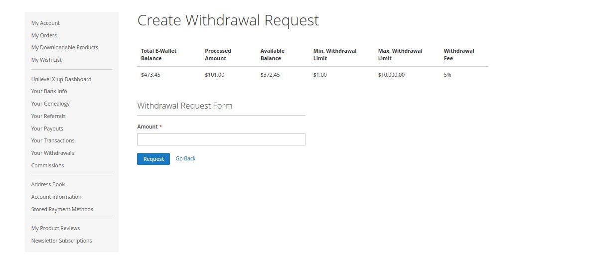 - Users request withdrawals, which are approved or rejected from the admin panel.