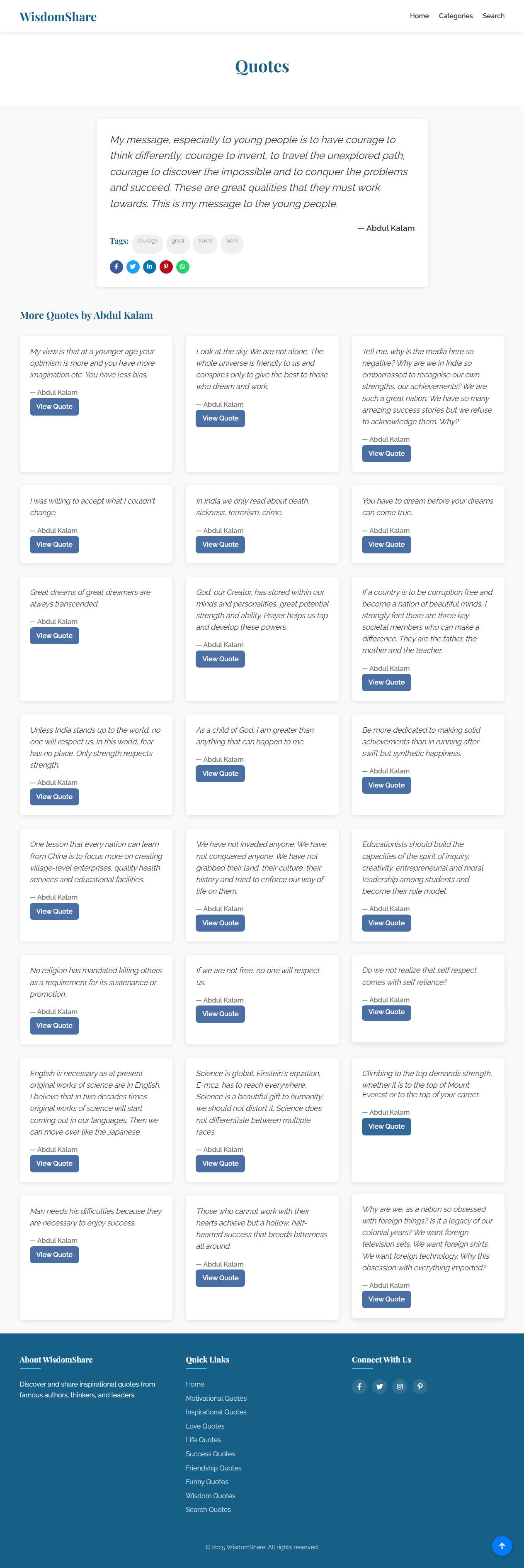 Whether you're launching an inspirational blog or a viral quotes hub, WisdomShare is the perfect starter solution.