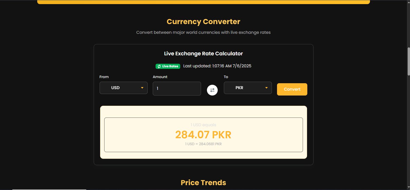 The application also features a smart caching system that minimizes API load while keeping prices up to date. This ensures fast load times, reduced server stress, and a smooth user experience even during high-traffic periods.