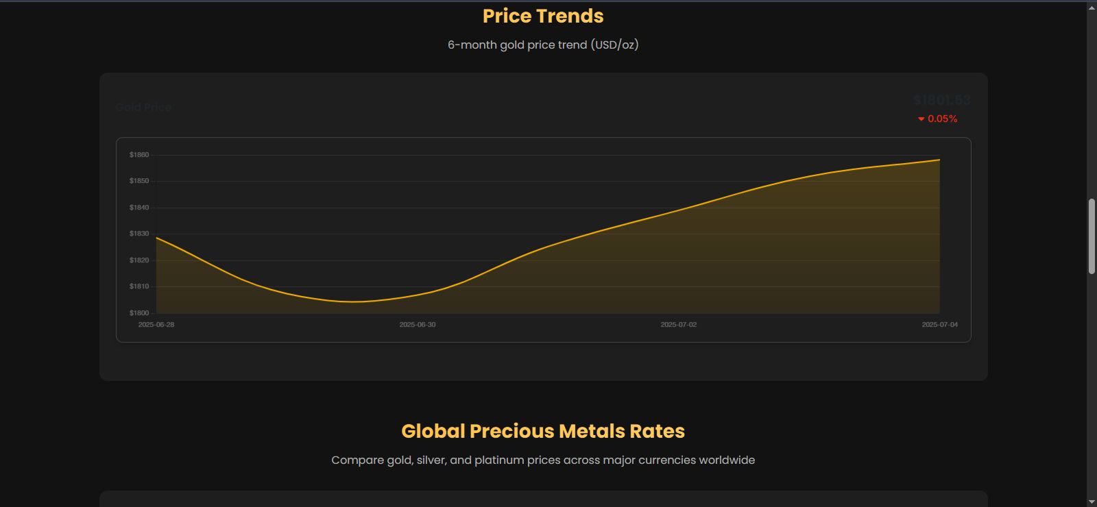 Whether you’re an investor, trader, jeweler, blogger, or financial analyst, this tool provides accurate, up-to-date market data with a beautifully designed and fully responsive interface. Easily track metal prices across more than 15+ global currencies with fast and reliable conversion tools.