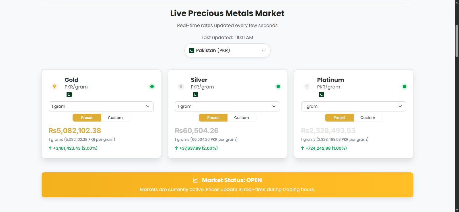 If you're looking for a professional, scalable solution to display precious metal rates and handle real-time currency conversions, this script delivers everything you need.