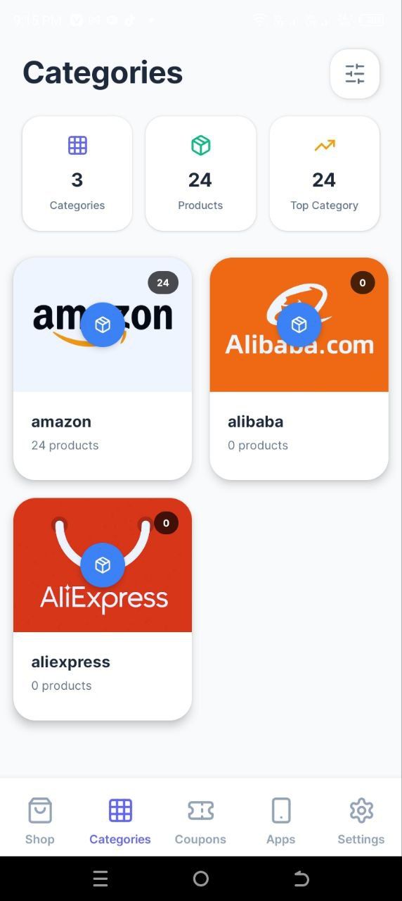 Built for flexibility and speed, the app uses Firebase Realtime Database for backend services including authentication, data storage, and updates. It supports importing product and coupon data via CSV, making it easy to manage your affiliate content.