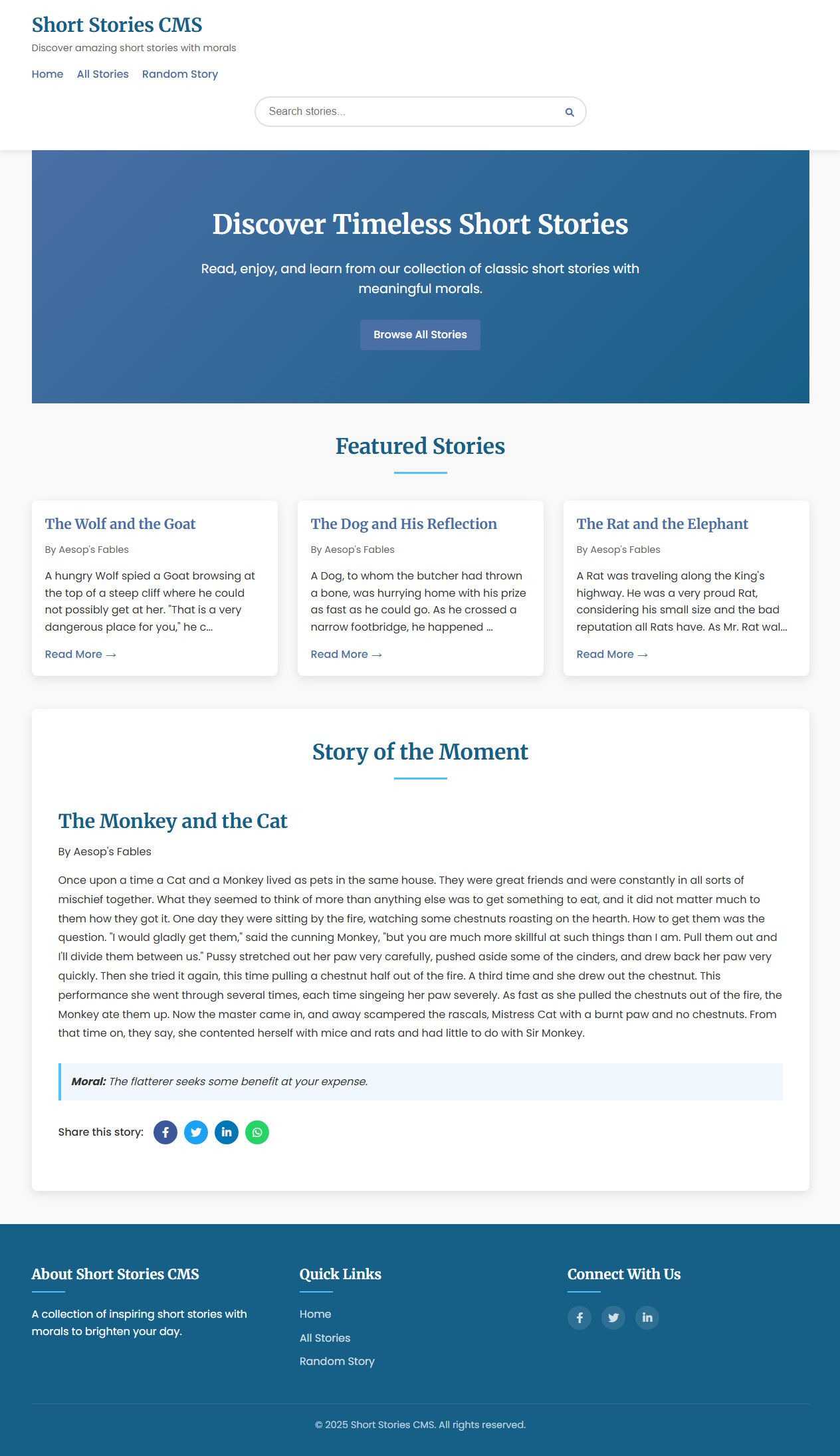 A fully automated PHP CMS for short stories that fetches and displays content via API — no manual posting needed, mobile-friendlShort Stories DB CMS