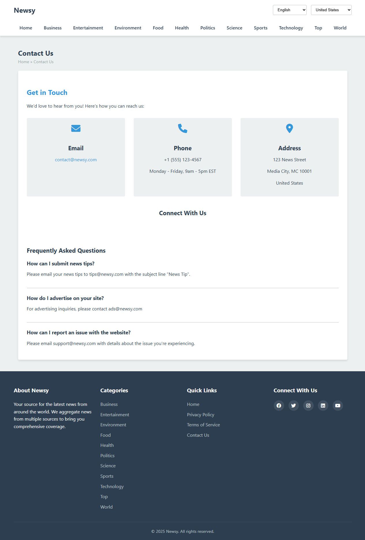 Newsy is a multilingual, country-specific news CMS that fetches real-time news from around the world using NewsData.io API.Newsy Multilingual and Multi Country News CMS