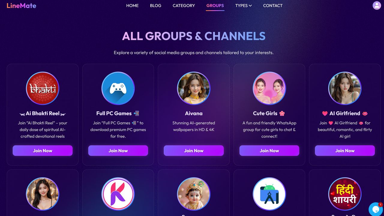 LineMate is your ultimate platform to discover and join the most trending and active groups across WhatsApp, Telegram, and other social media networks. Whether you're looking to connect with like-minded people, grow your network, or explore groups based on hobbies, jobs, business, entertainment, or education, LineMate brings it all under one roof.