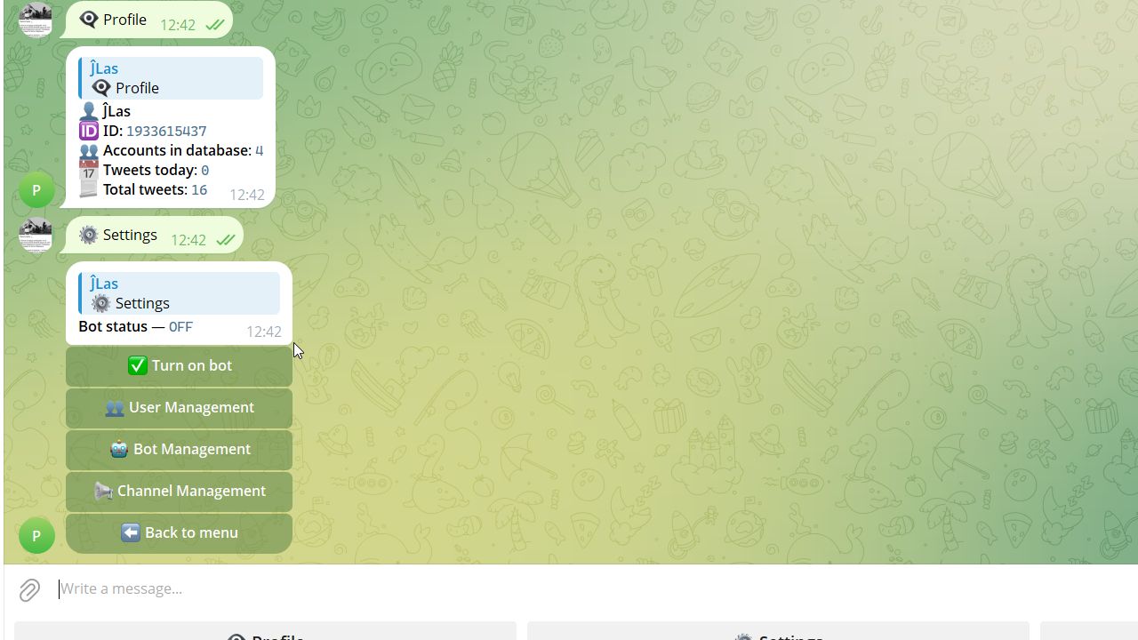 Interaction is managed through a built-in Telegram Bot, designed to work only for the user whose Telegram ID is specified in the .env file.