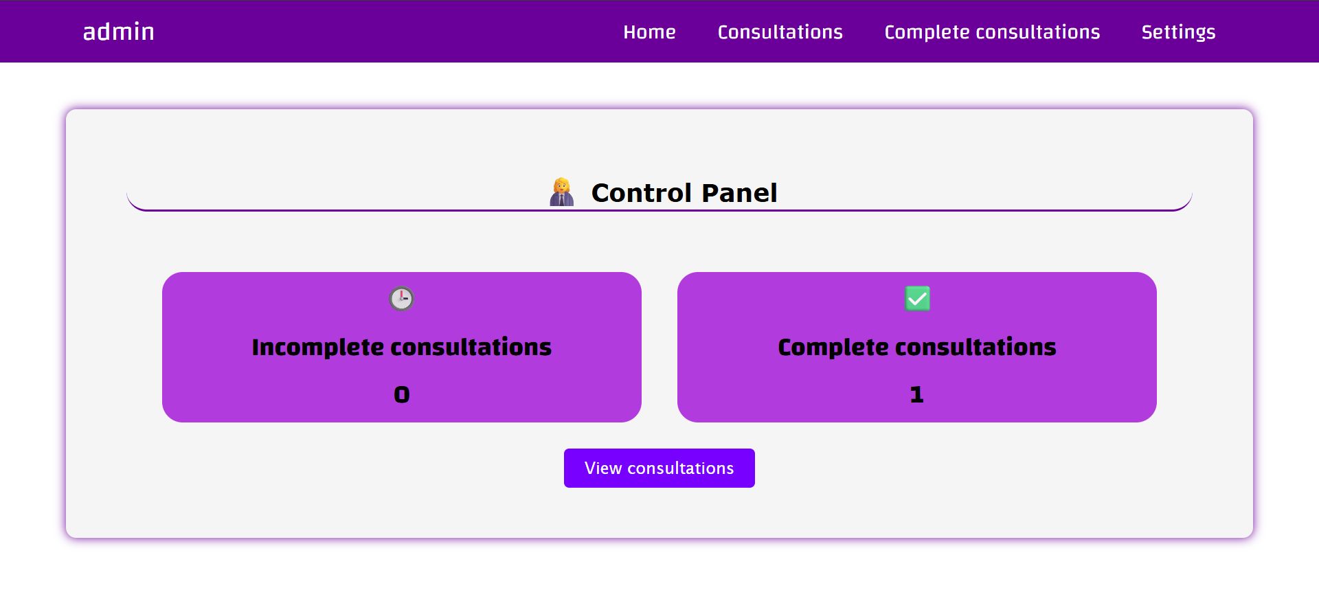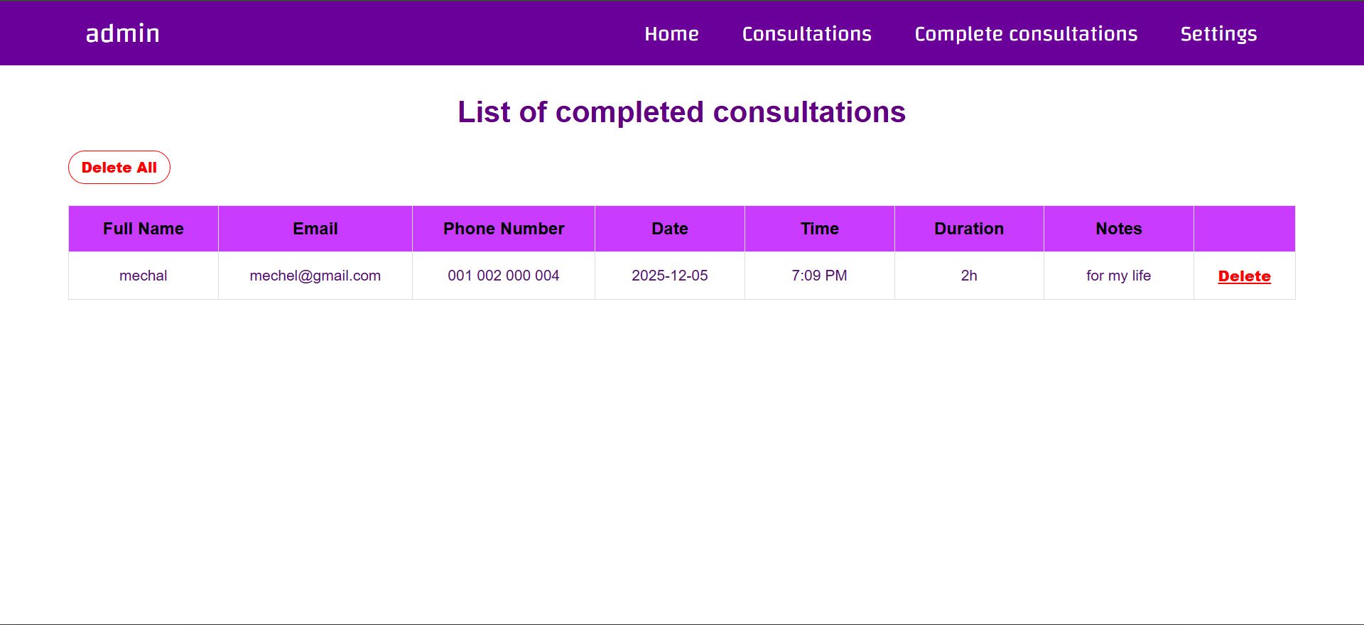 It includes all the essential features to handle client inquiries, track progress, and manage completed consultations, all in one simple and modern dashboard.