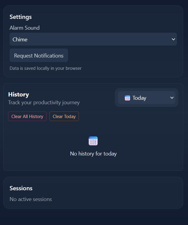 Tags | responsive, Timer, Productivity, professional, web application, Task Management, offline, todo list, dark theme, time tracking, react app, glass morphism, multi task, bilingual |