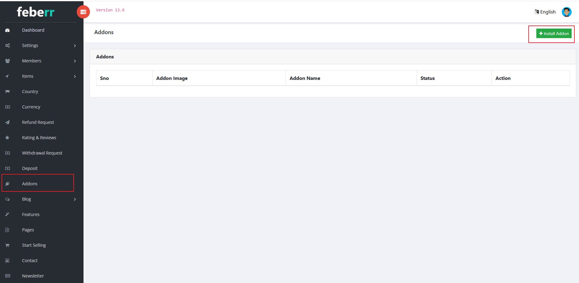 - Feberr v 13.6 or above should be pre-installed on your server.