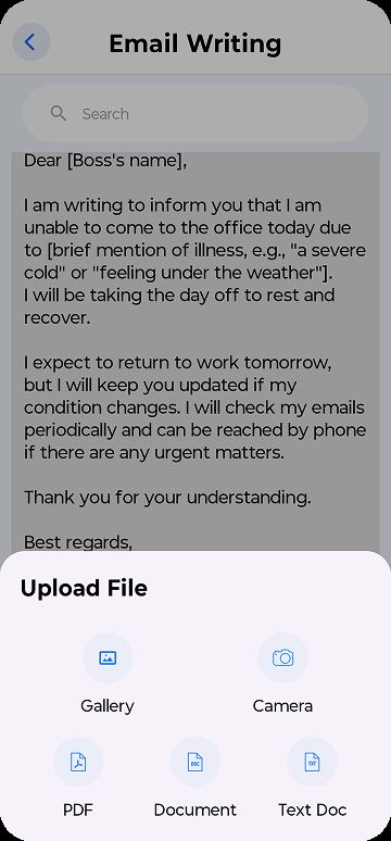 describe or extract text, and even upload PDF, DOC, or TXT files for the AI to read. You can also use voice-to-text to give commands easily.
