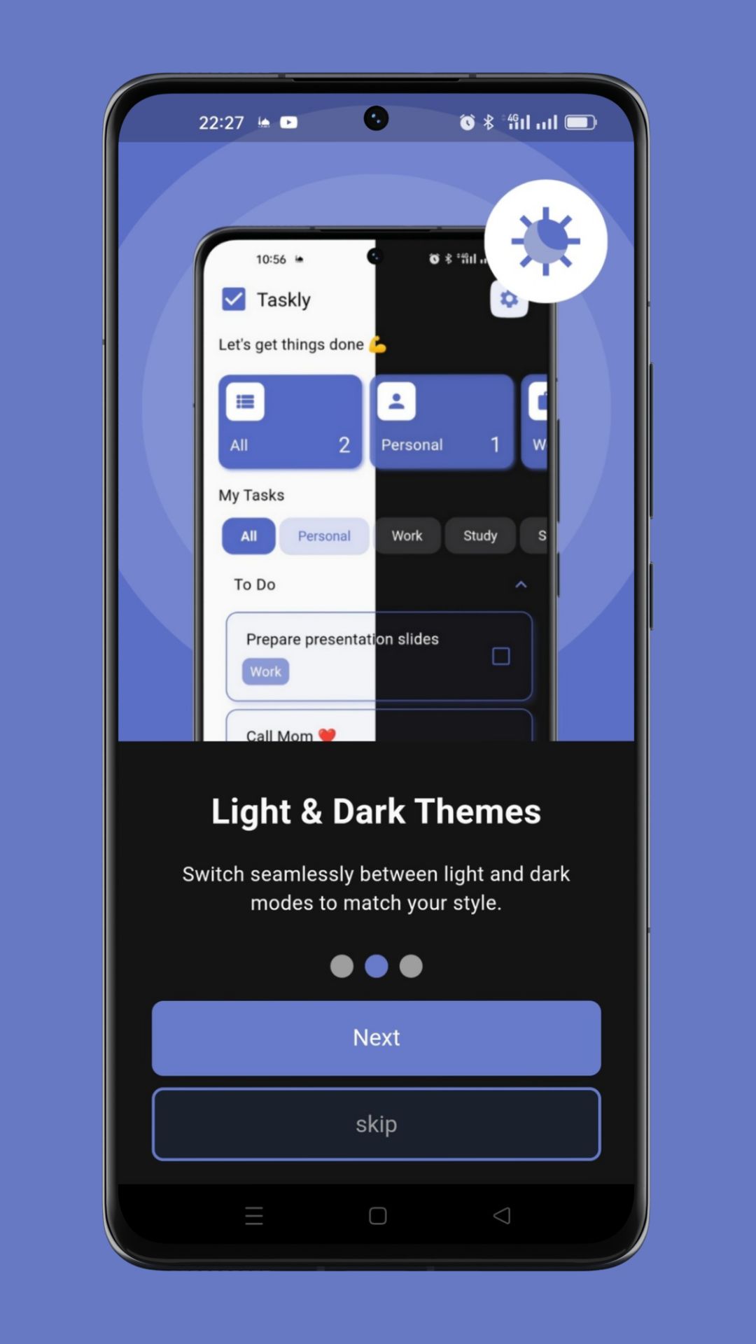 A sleek Flutter to-do app with dark/light mode, smooth animations. Perfect starter kit for productivity apps.Taskly - To-do App - Flutter App Source Code