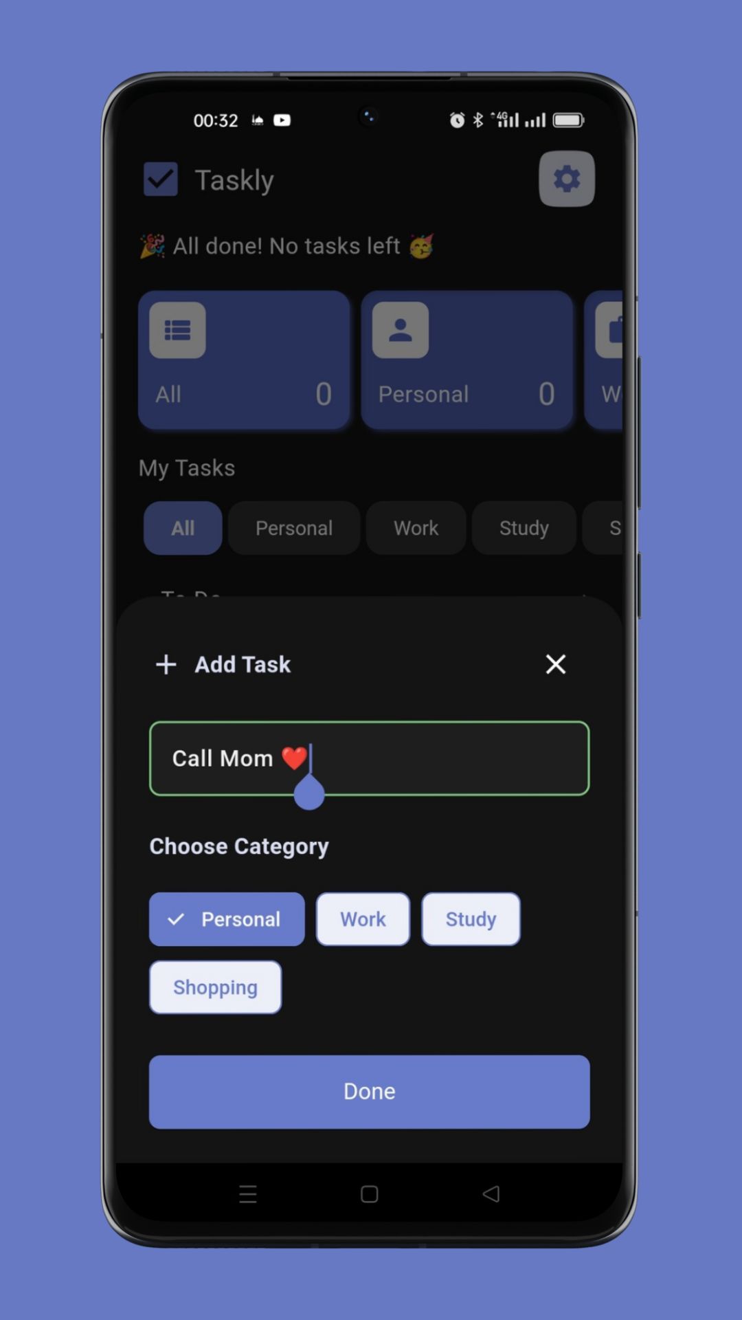 - Effortless Task Management: Taskly's core strength lies in its simplicity. Users can effortlessly add, edit, and delete tasks, mark them as complete, and organize them into categories, making daily planning straightforward and efficient.