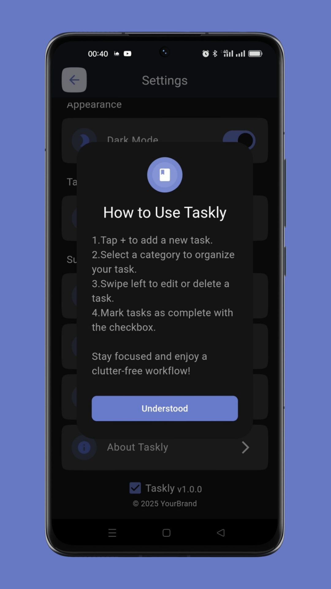 Skip the guesswork and jump straight into delivering a high-performance Flutter To-Do app. Taskly is built for speed, flexibility, and long-term growth – whether you're creating your first productivity tool or expanding your app portfolio.