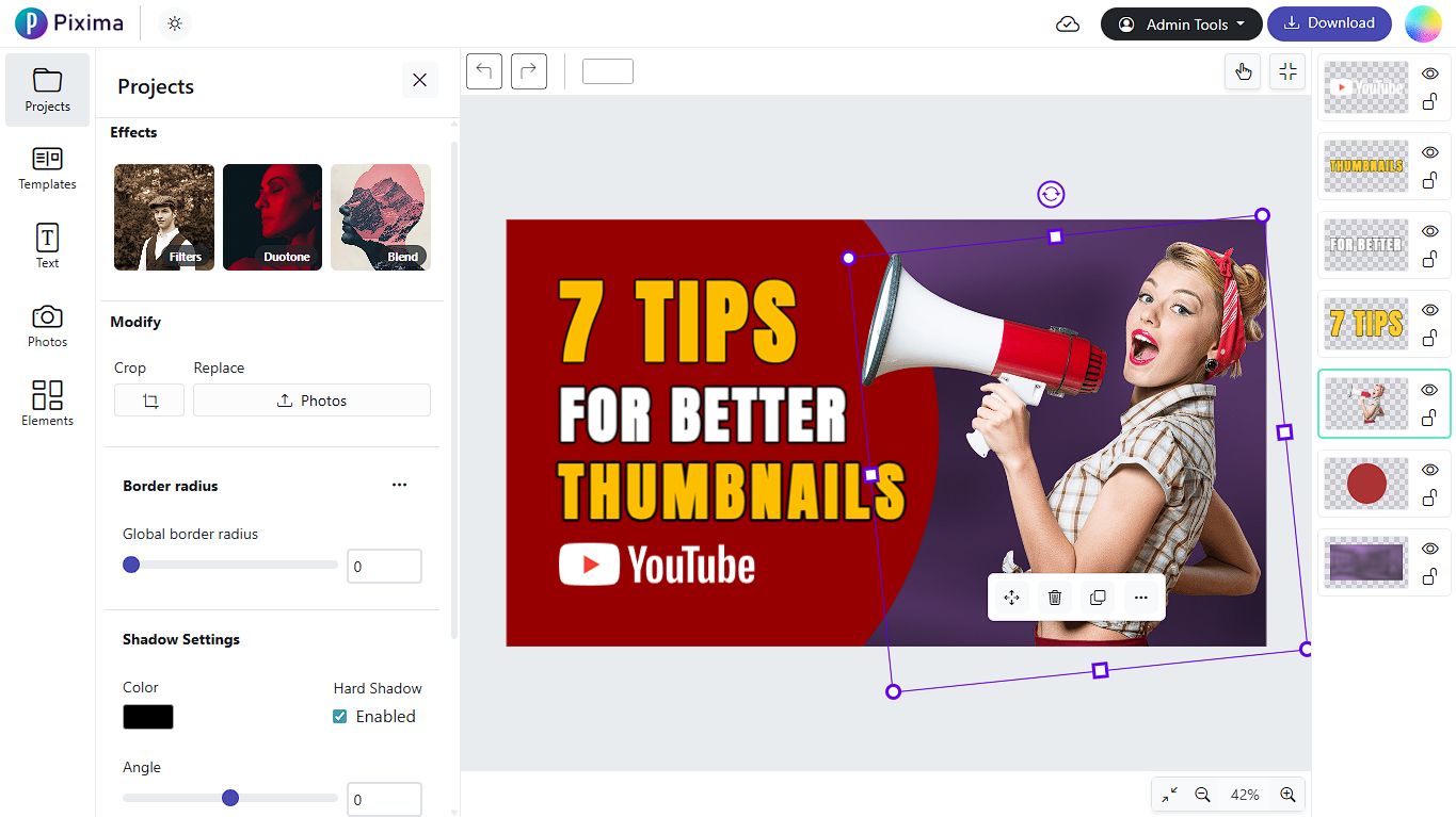 - Apply filters like blending, duotone, and effects to images
