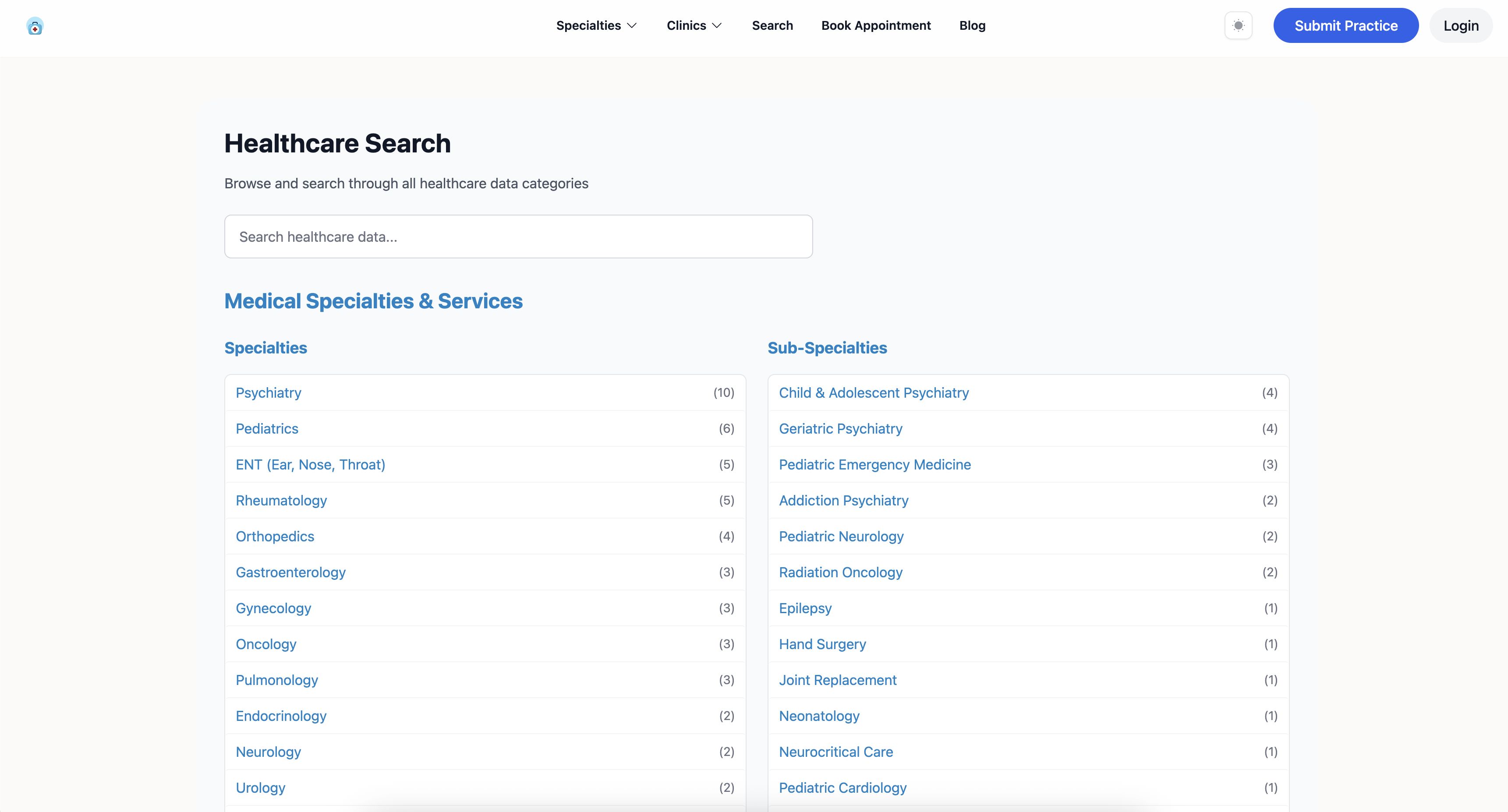 - SEO Optimization: Meta tags, structured data, and search-friendly URLs for better healthcare provider discoverability.