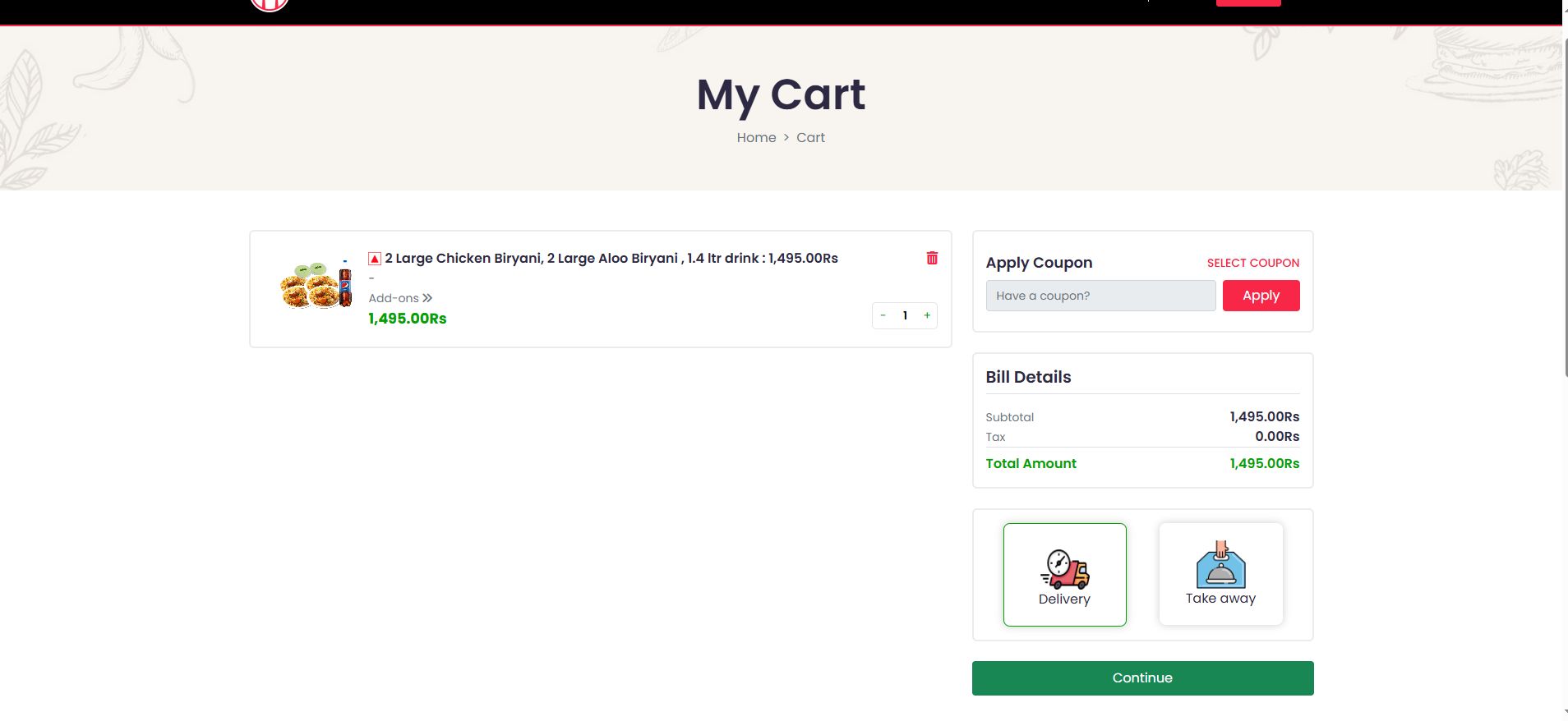 - Restaurant homepage with banner & offers