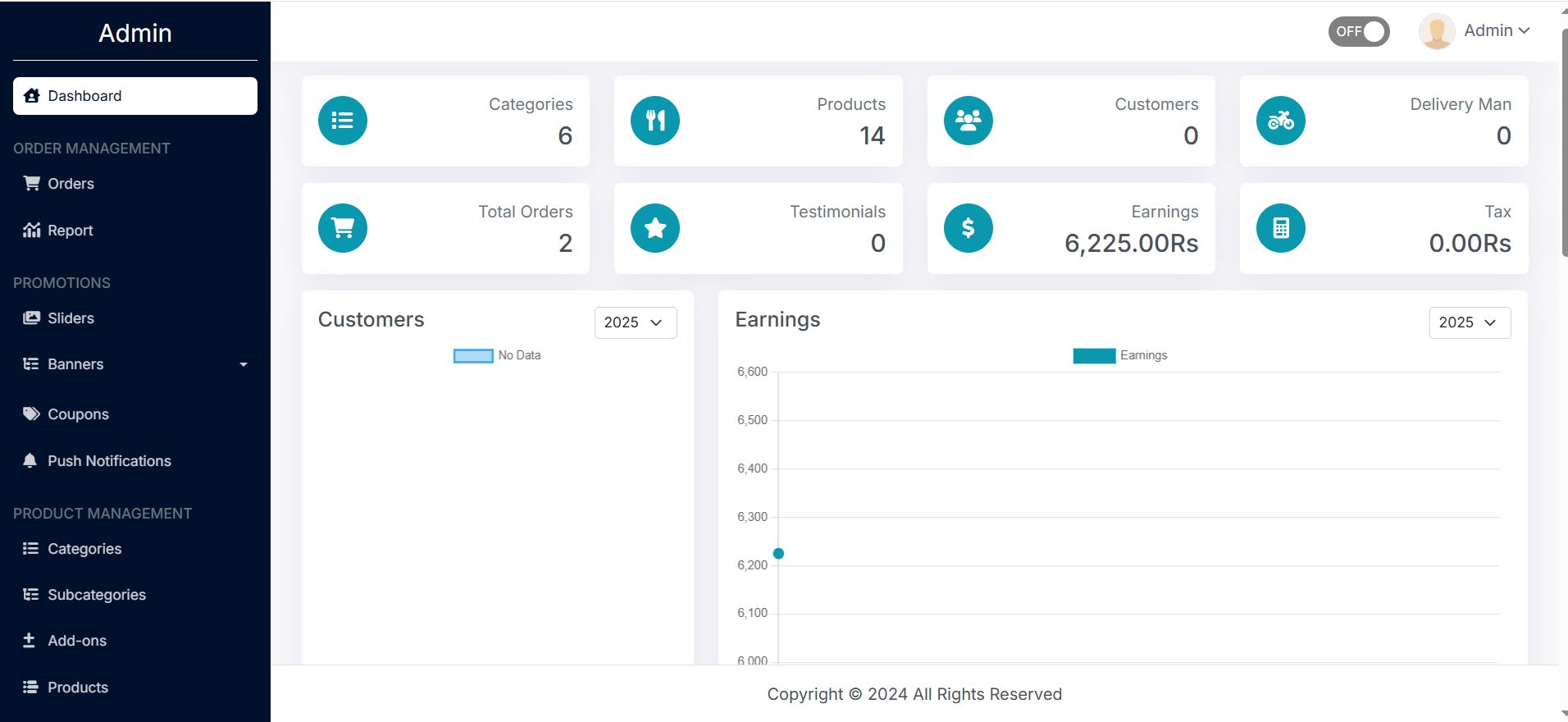 - Dashboard with quick KPIs (total sales, today’s orders, active customers)