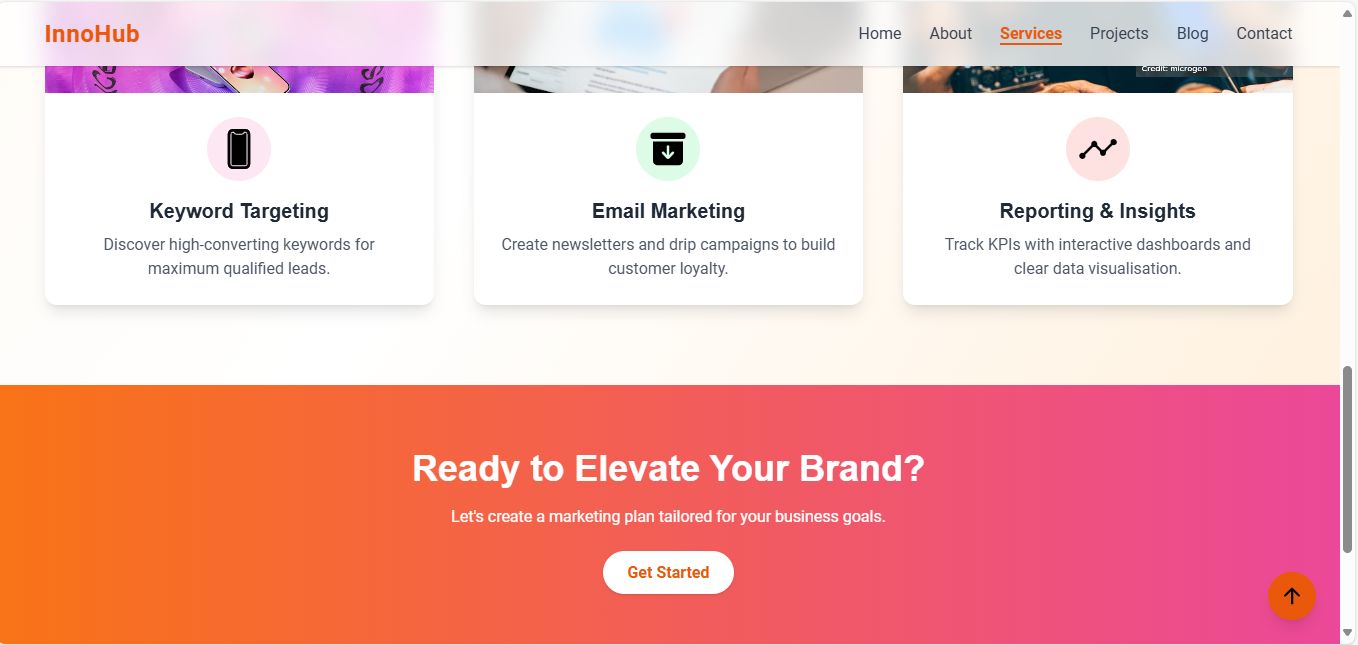 - Services Page (SEO, Content Marketing, Social Media, Email Marketing, Web Development, PPC)