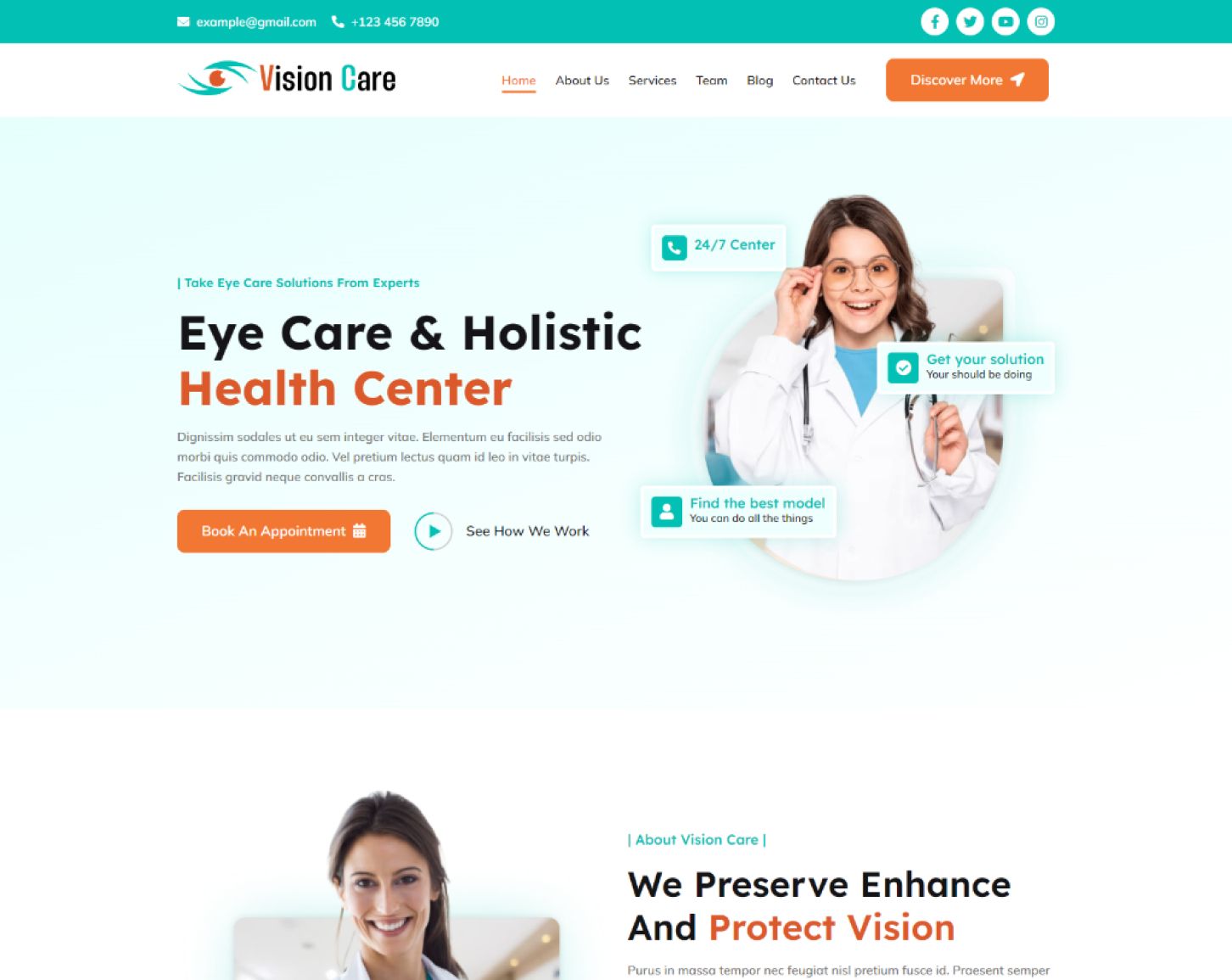 Vision Care is a modern Elementor kit for eye clinics, hospitals, and optometrists. Features 7+ pages and easy to customisation.Vision Care - Eye Clinic And Optometry Elementor