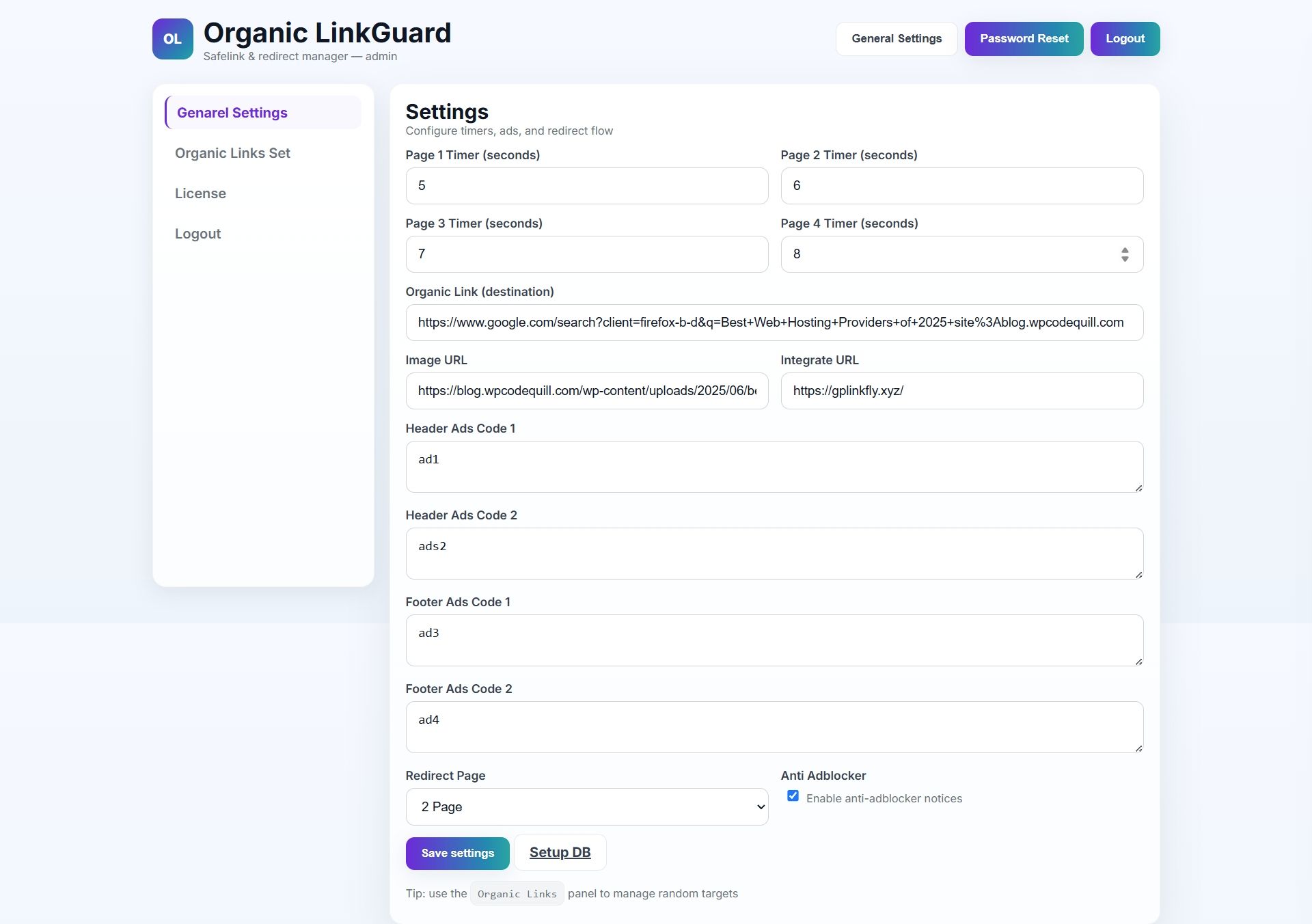 | Tags | organic safelink, linkguard safelink, safelink with admin panel, adlinkfly integration, php safelink manager, organic redirect tool, wp organic safelink, organic linkguard safelink |
