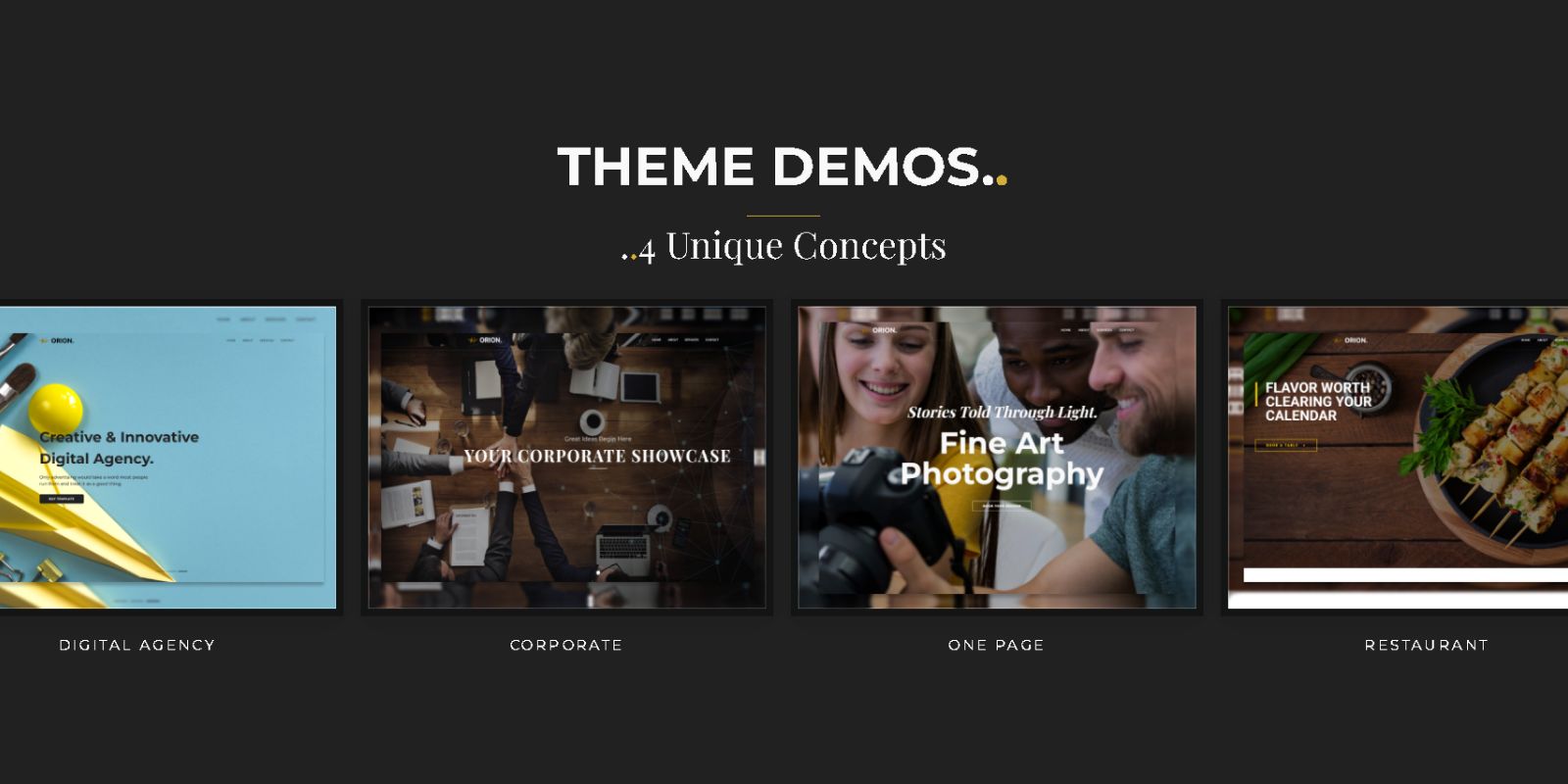 Experience versatility and creativity with our 4-in-1 Exclusive Template, designed to cater to multiple industries — Restaurant, Photography, Corporate, and Digital Agency. This modern and stylish package offers 12 beautifully crafted pages with multi-layout options, allowing you to build unique and professional websites effortlessly.