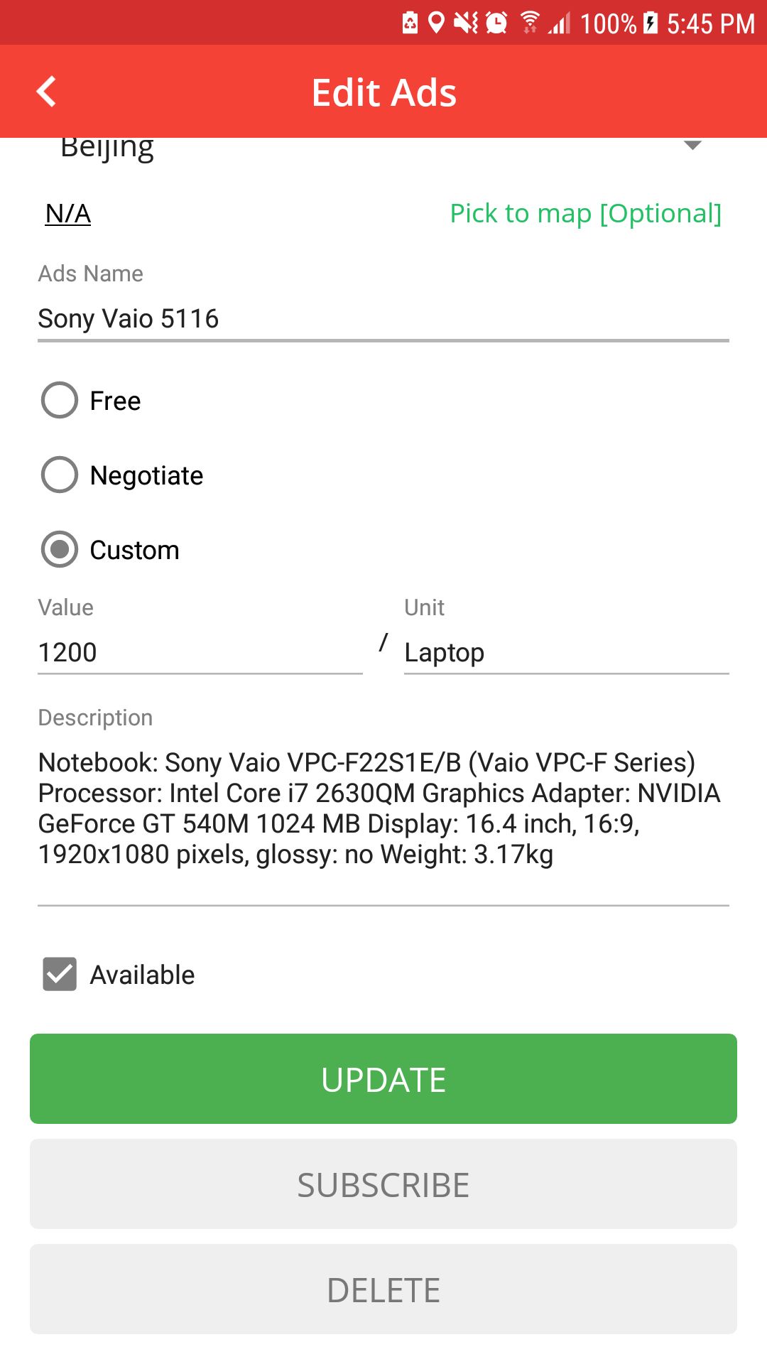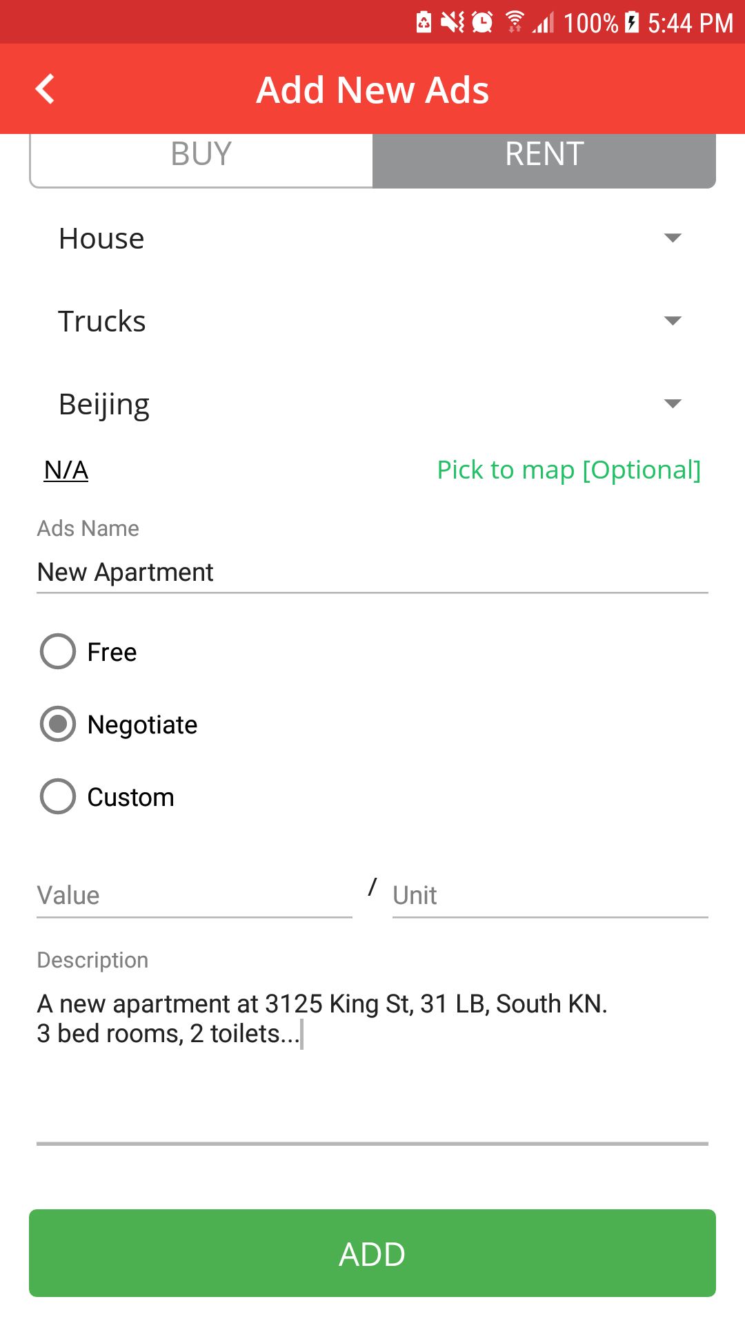 - Create new ads with GPS supported