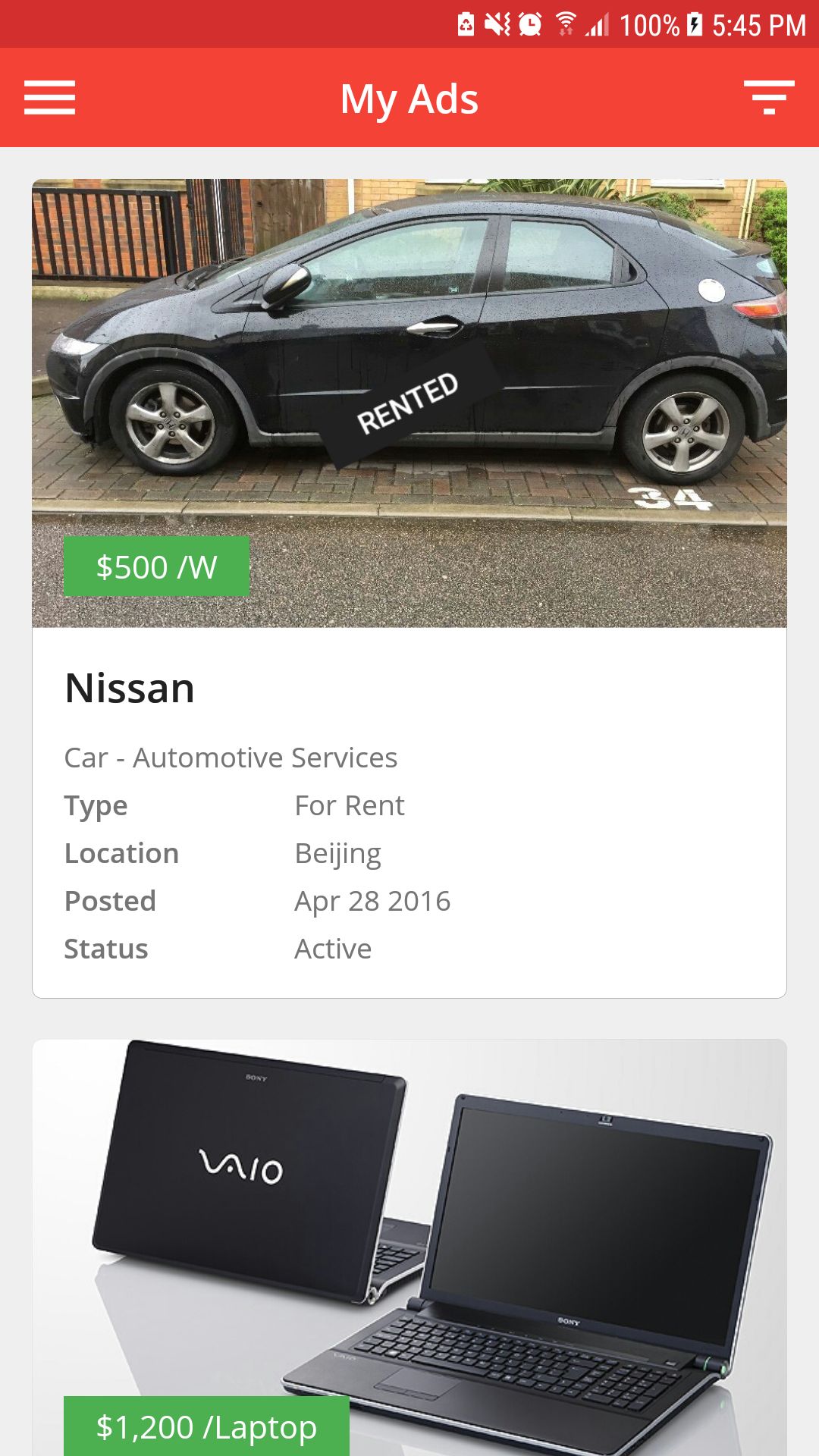- Search ads by various filters
