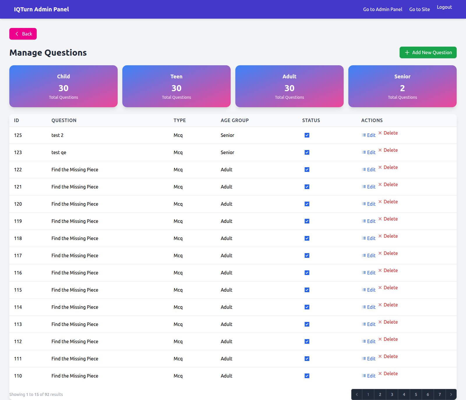 IQTurn is a next-generation IQ testing platform designed for all ages, delivering accurate, age-adapted assessments that meet international standards. Leveraging cutting-edge algorithms and adaptive question sets, IQTurn provides instant, precise analytics while ensuring a fun, user-friendly experience.