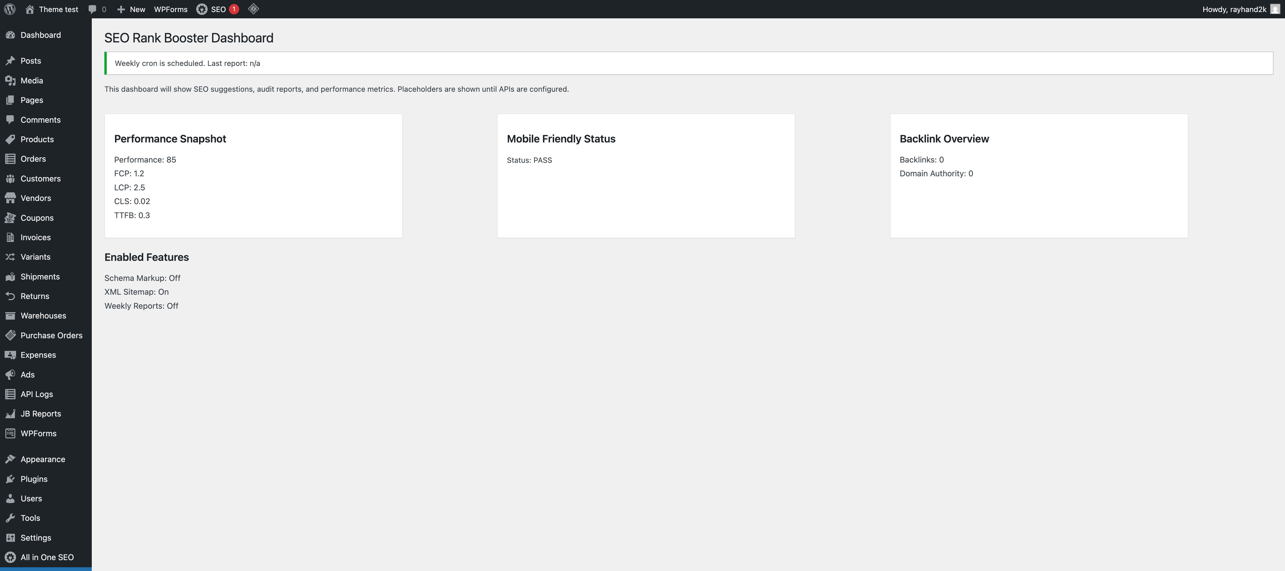 Setup: After activation, go to the SEO Rank Booster settings under the WordPress admin menu.