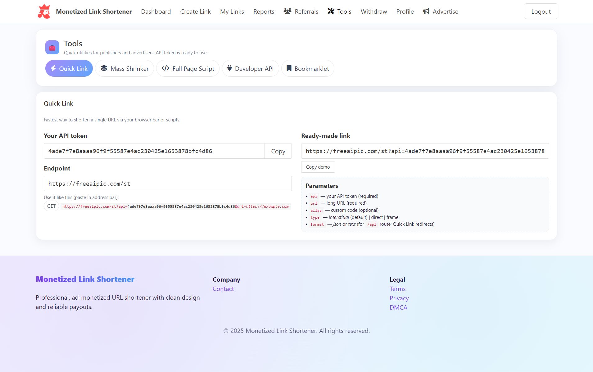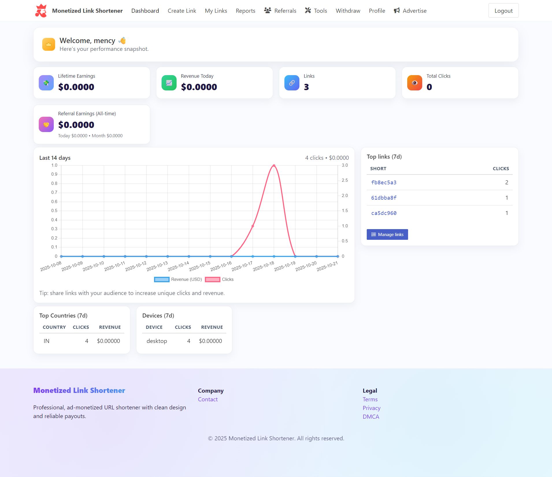 Your monetized shortener is now fully operational. Publishers can start earning, advertisers can launch campaigns, and you can manage everything from a single dashboard.