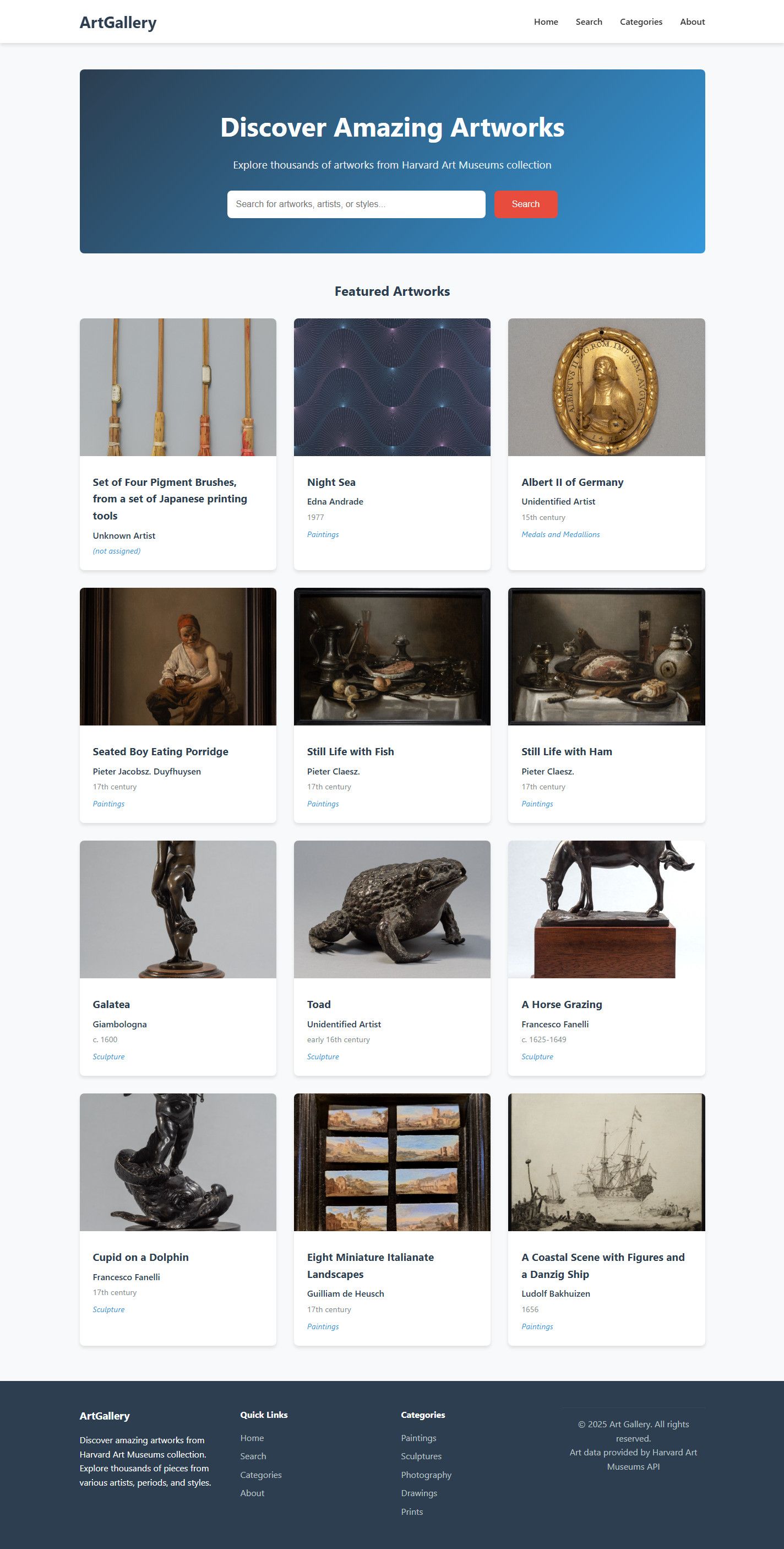 ArtGallery is a modern, responsive PHP web app that showcases artworks from the Harvard Art Museu...