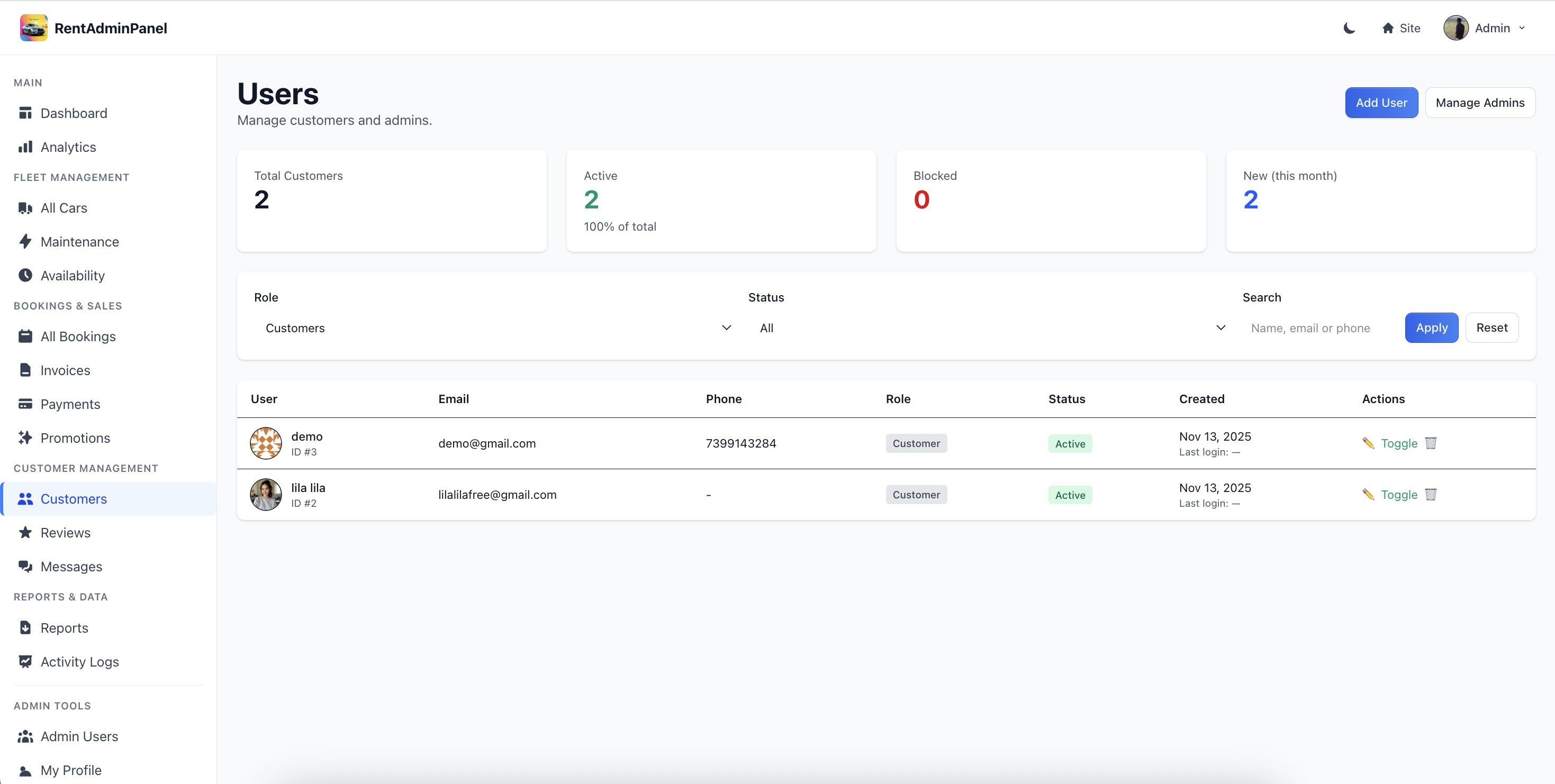 Overview A production‑ready Car & Bike Rental PHP script. Customers can search, book, apply promo codes, pay via Razorpay or PayPal (or wallet), review vehicles, mark favorites, and manage bookings. The admin panel manages fleet, pricing, availability blocks, promotions, affiliates, users, settings, email templates, and reports. One‑click installer and modular helpers—no heavy framework.