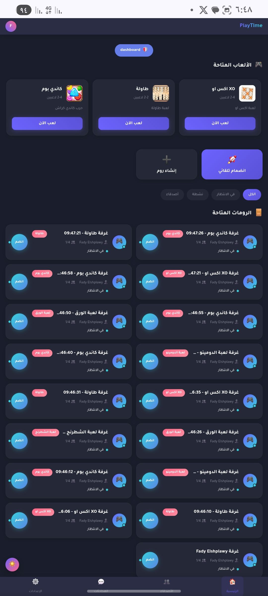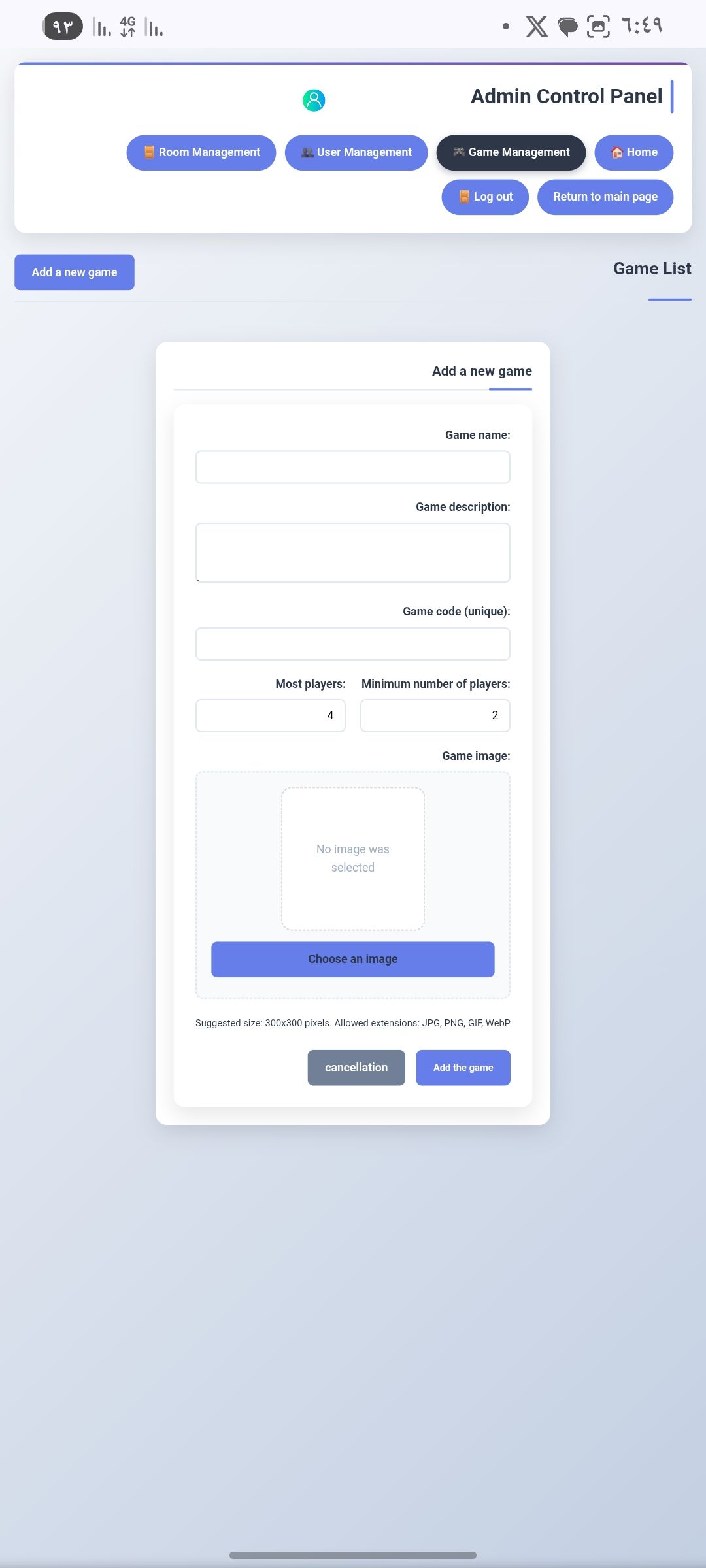 PlayTime is a modern multiplayer gaming platform that allows users to create and join game rooms, chat in real time, and enjoy a smooth gaming experience. The system includes a full admin dashboard, multi-language support, responsive design, and configurable settings.