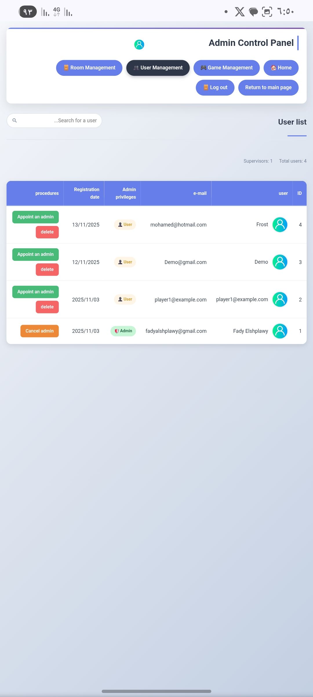 Multiplayer gaming platform with rooms, chat, and admin dashboard. Full source code and fast performance.PlayTime - Gaming Platform