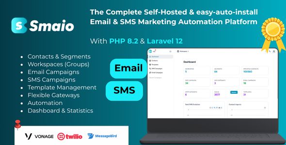 Smaio is a simple, powerful, and easy-to-install self-hosted Email & SMS marketing software for beginners and experts.Smaio - Self-Hosted Email Marketing Platform