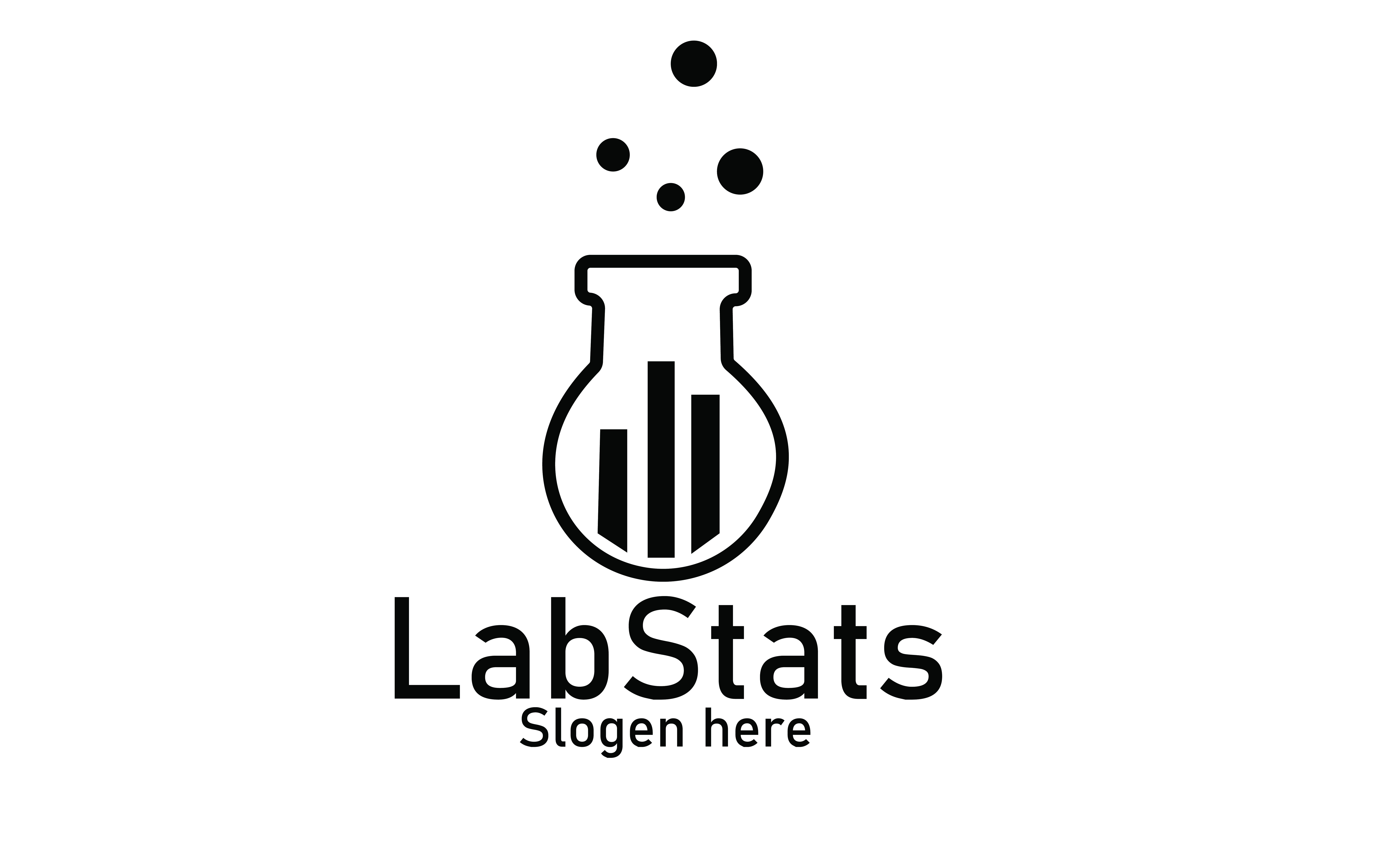 This is a professional and modern logo design concept titled "LabStats." The design cleverly integrates two distinct con