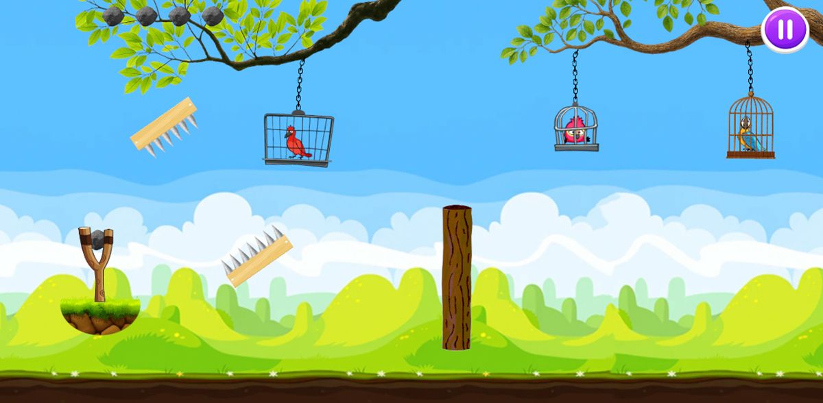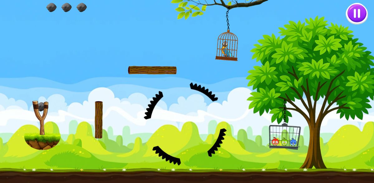 The main goal of the game is to free all the birds in each level. To achieve this, players must have precise aim, launch angle, and timing so that the stone passes through rotating and moving obstacles and hits the target.