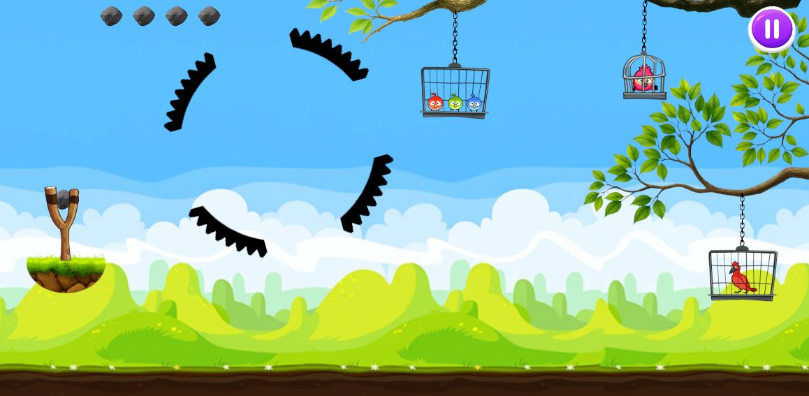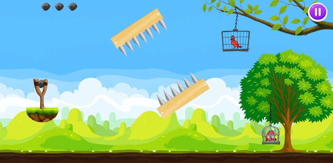 Bird Rescue Game is an exciting and entertaining physics-based game where the player must use a bow to launch a stone and break the bird cages to free them.
