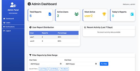 Built with modern technology and user-friendly design, this system eliminates paperwork and streamlines your reporting process while providing powerful administrative tools for better oversight.