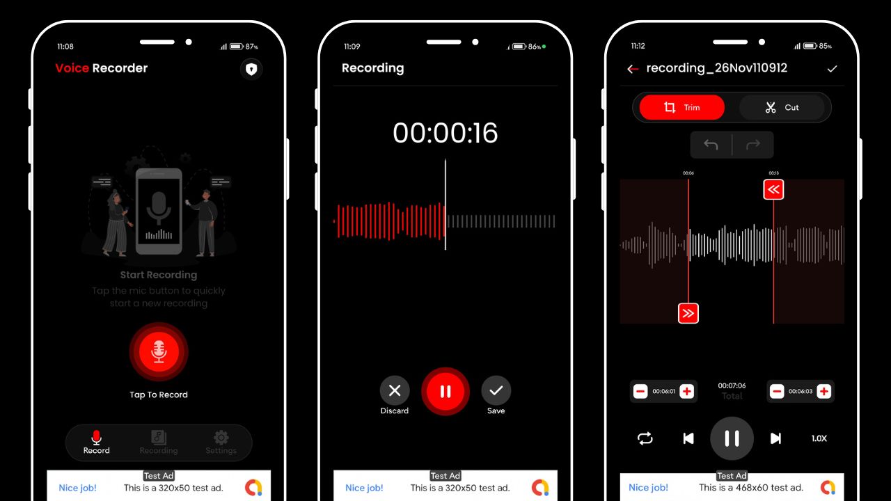 Looking for a voice recorder and editor app to easily record your voice and make it audible with a perfect tone? then try this appMJ Voice Recorder Audio Memos AdMob FB Ads Android