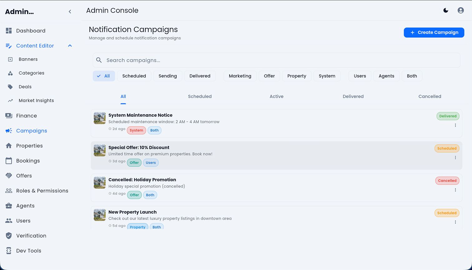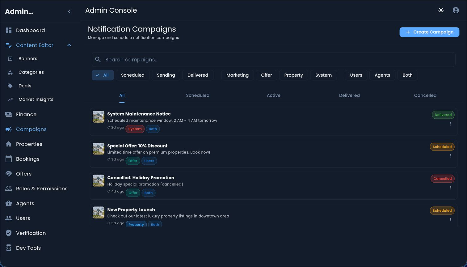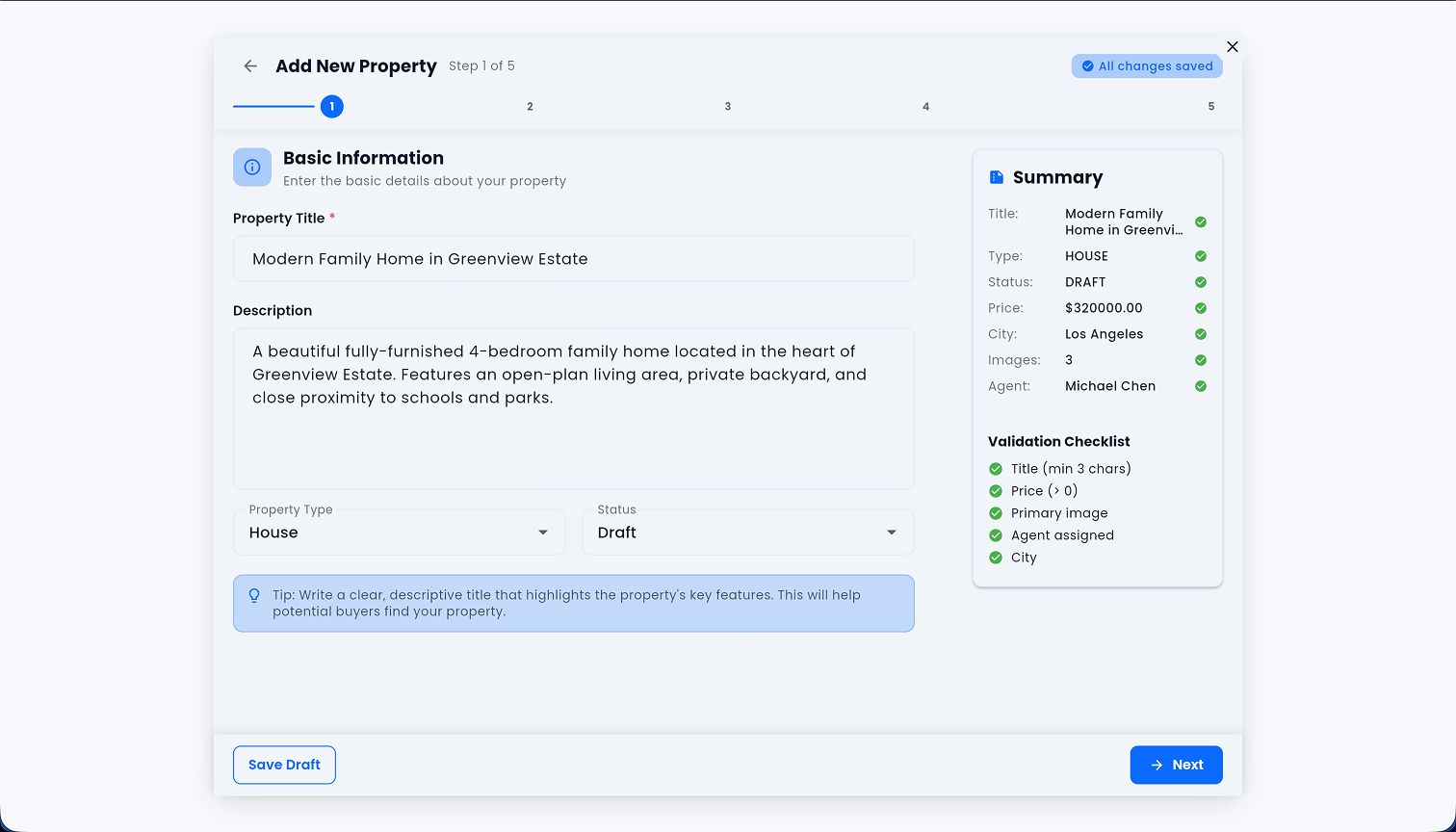 - Advanced Property Search & Filters (price, type, amenities, bedrooms)