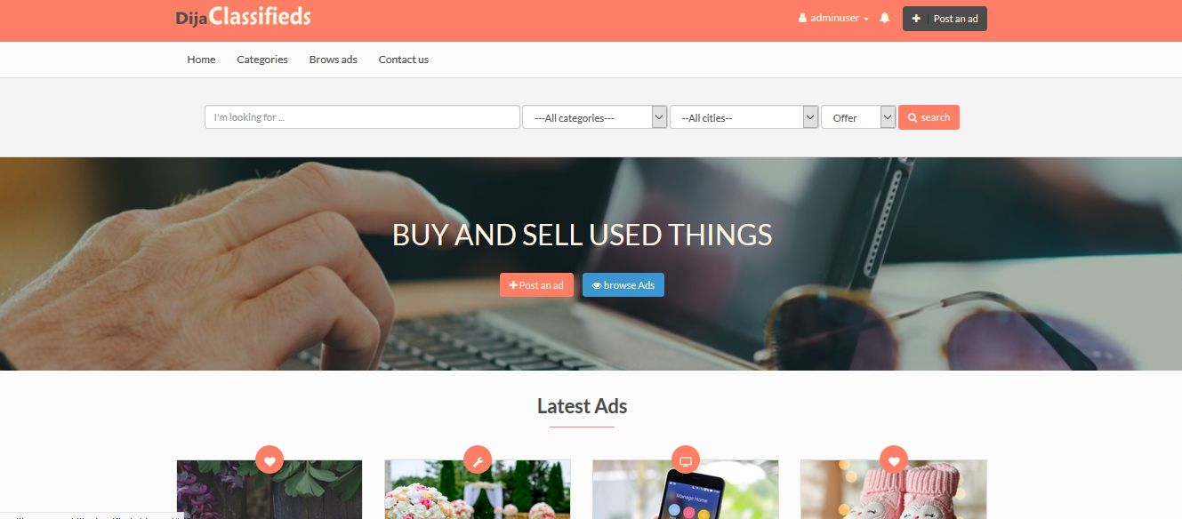 DijaClassifieds is a fully responsive design Open Source Classifieds Php Script, built with Symfony3 Framework. It is equipped with a powerful admin dashboard and several features.