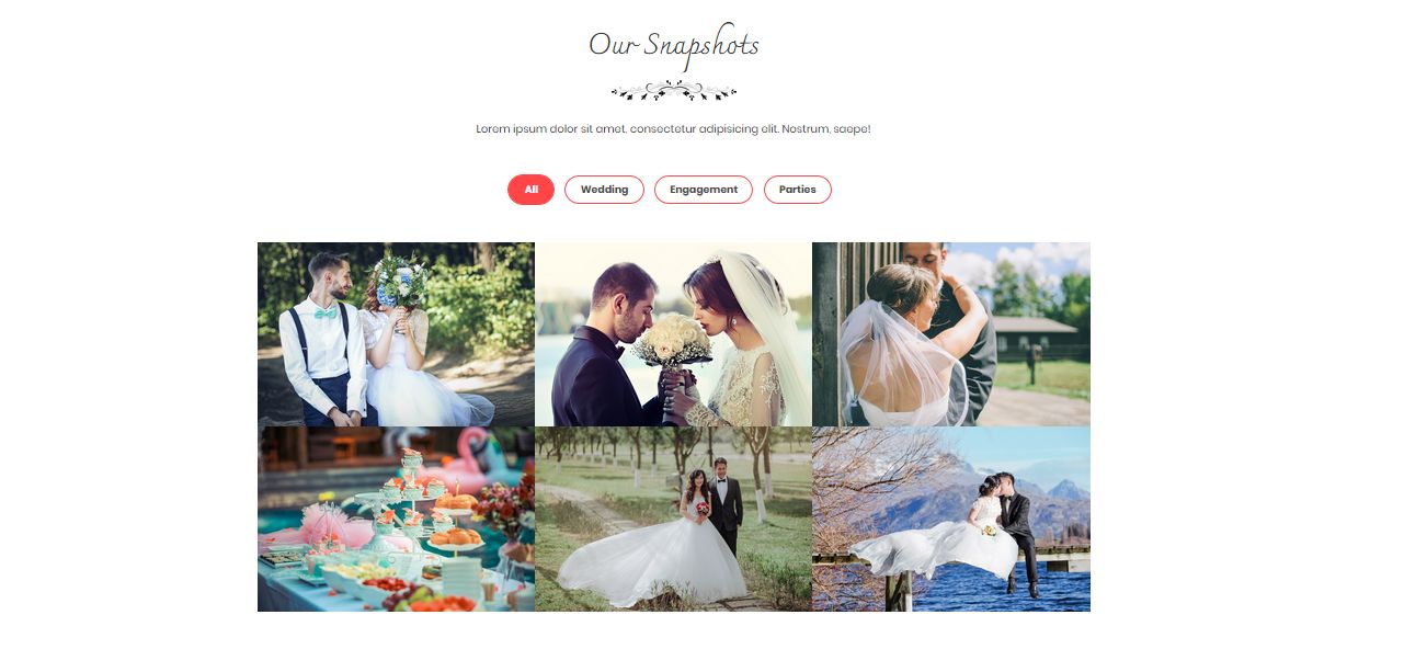 Sporsho is a responsive HTML5 wedding template. It is a modern, beautiful, elegant wedding template. Modern tools like HTML5, CSS3, Bootstrap, JQuery  were used to build this template. It has unique design with amazing features for couples who want to build their wedding website. It looks great on mobile devices and desktops. It is clean and simple .