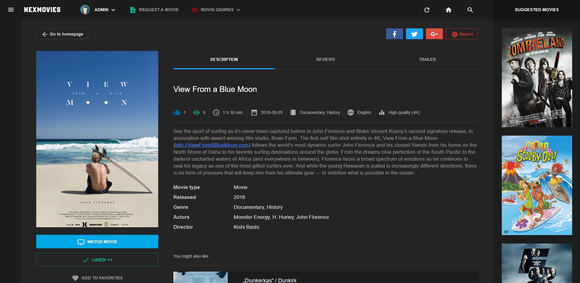 NexMovies is a platform for creating list of movies and TV Shows, which gives an opportunity to watch movies and TV online. It allows for users to search, watch, like and review your movies or TV Shows easily.